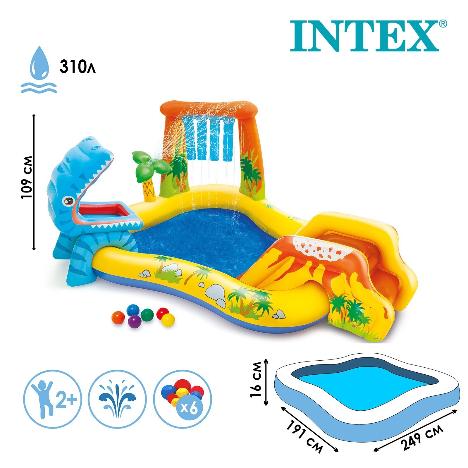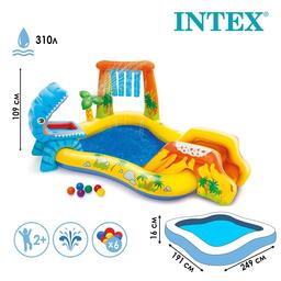 Игровой центр «Динозавр», с распылителем, 249 х 191 х 109 см, от 2 лет, 57444NP INTEX