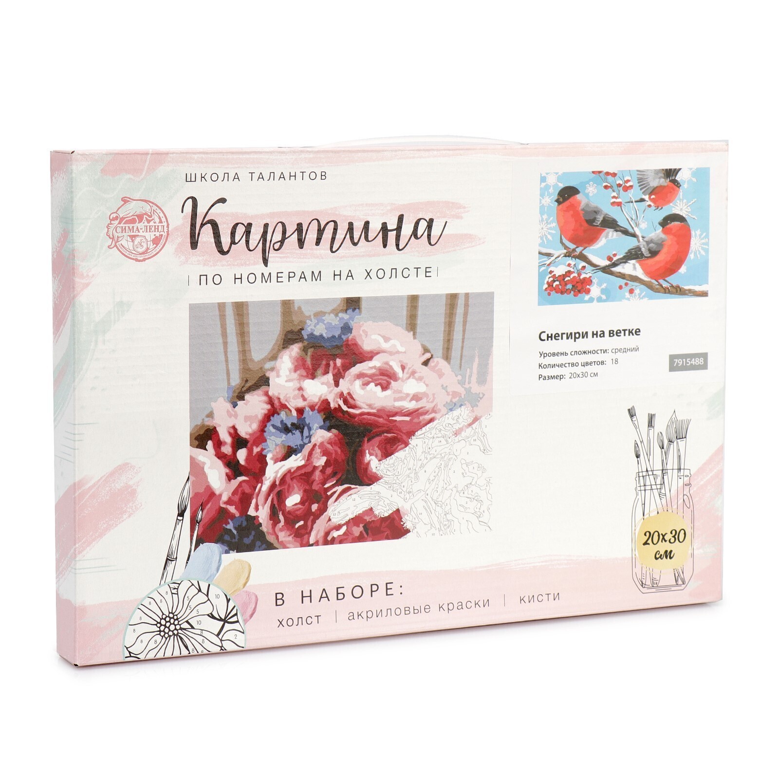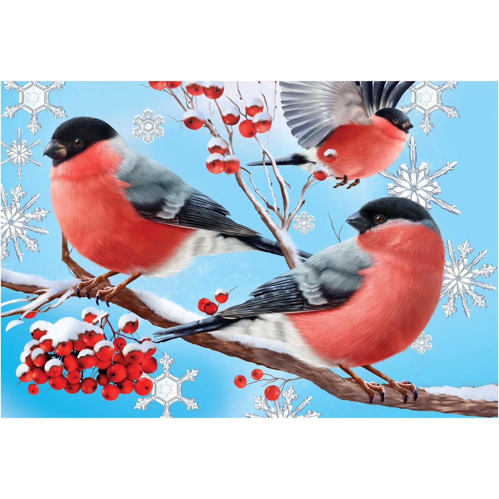 Картина по номерам на холсте с подрамником «Снегири на ветке» 20х30 см