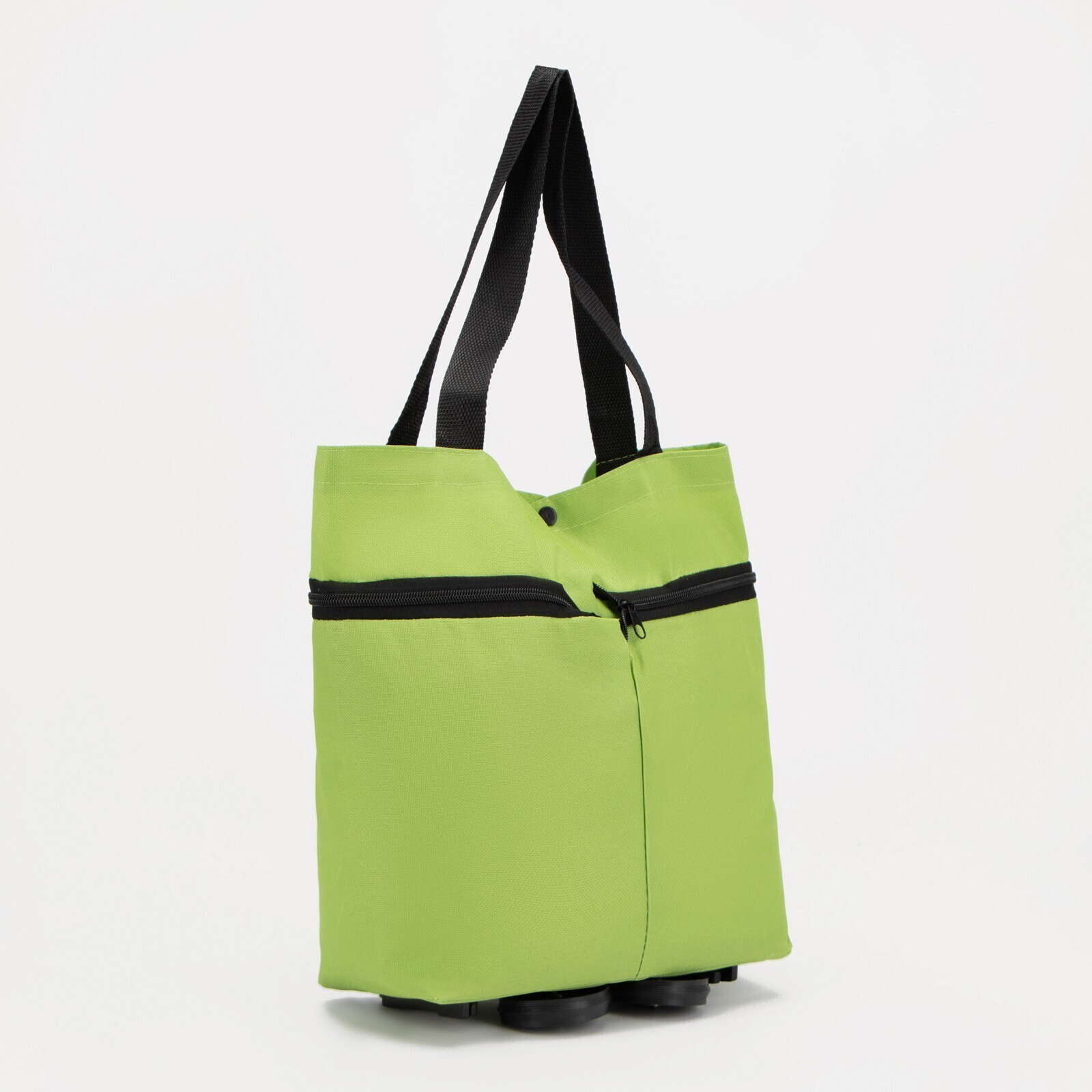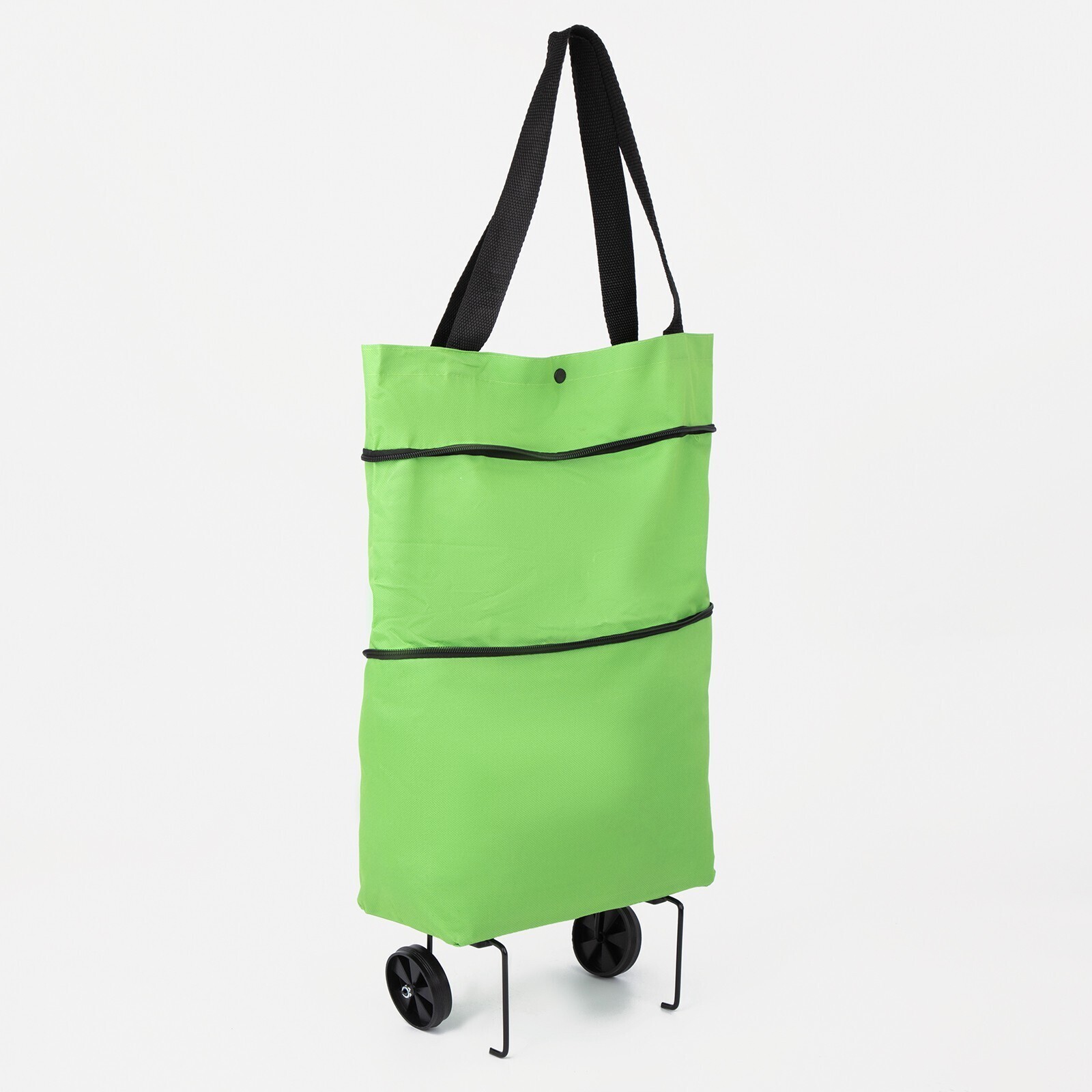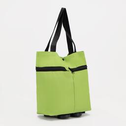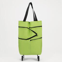 Сумка хозяйственная складная на 2х колёсах, на кнопке, цвет зелёный