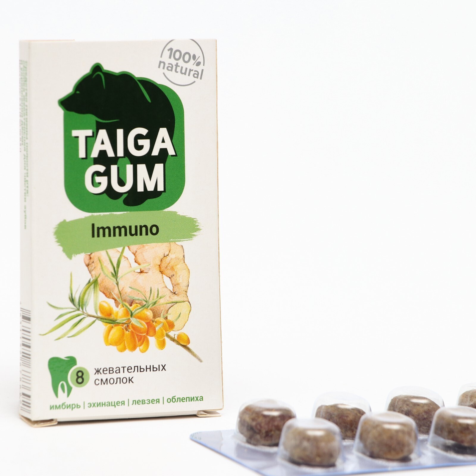 Смолка для иммунитета Taiga gum, в растительной пудре, без сахара, 8 штук