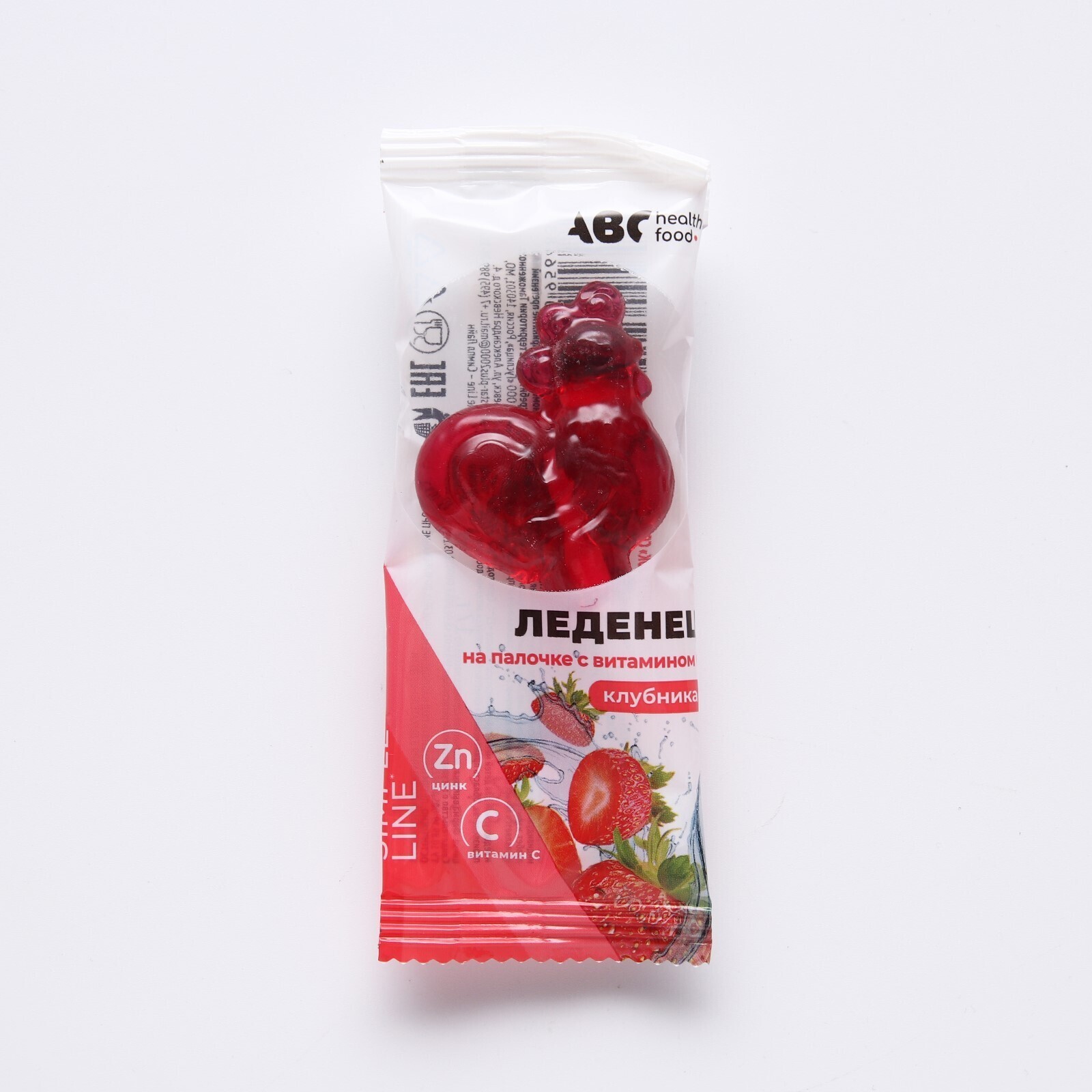 Ледецовая карамель Петушок ABC Healthy Food с цинком и витамином C, клубника, 17 г