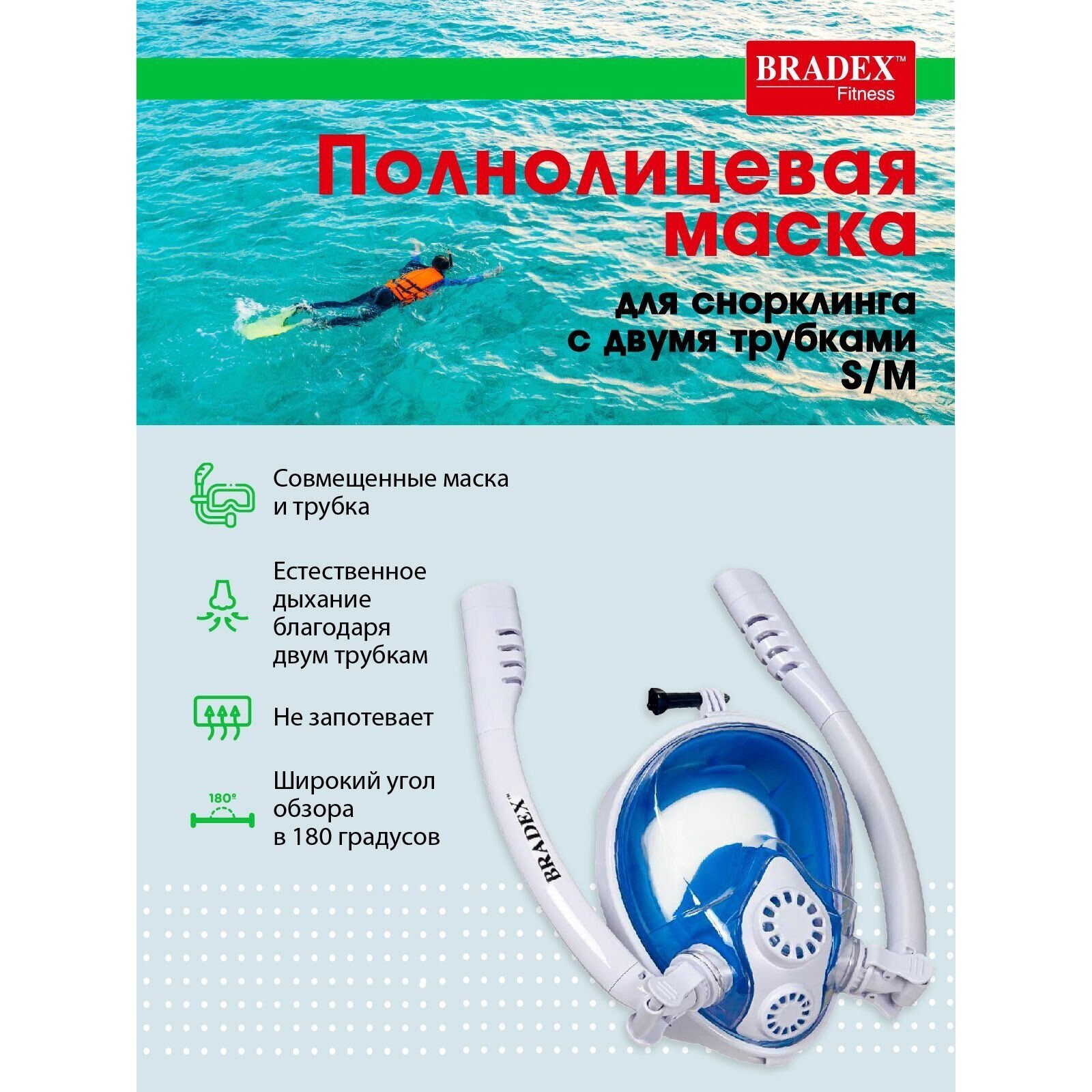 Полнолицевая маска для снорклинга Bradex, с двумя трубками, размер S