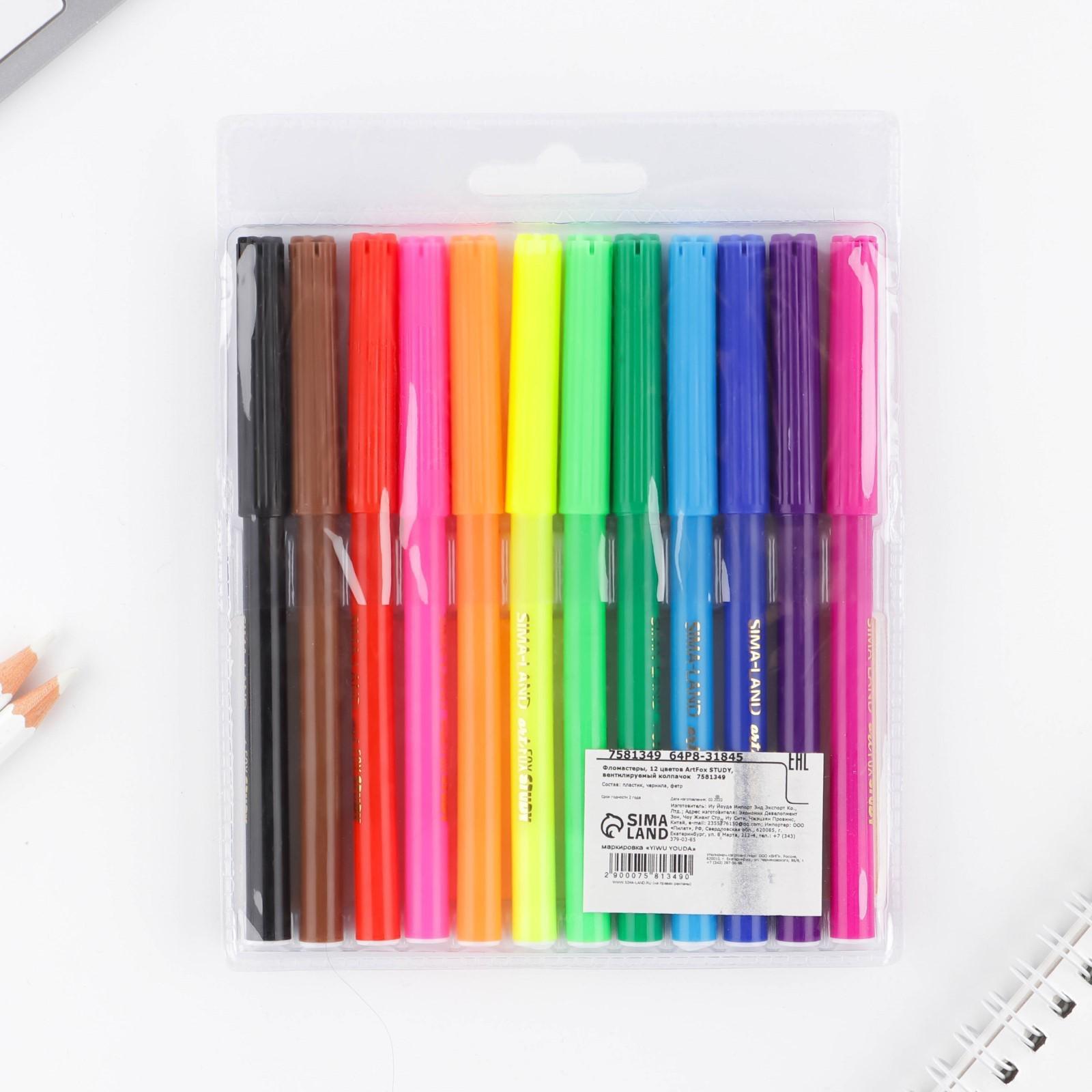 Фломастеры, 12 цветов ArtFox STUDY, вентилируемый колпачок
