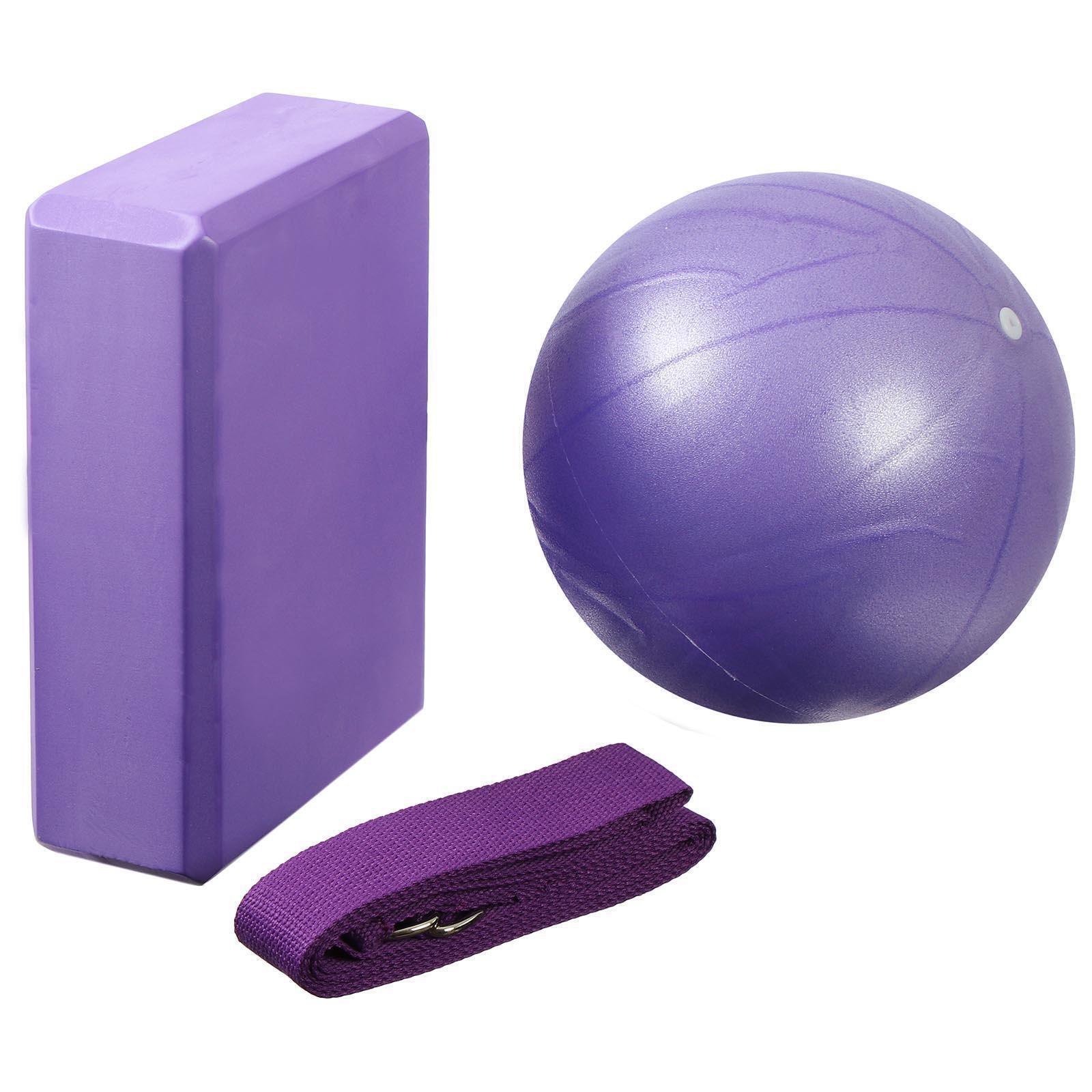 Набор для йоги (блок+ремень+мяч), цвет фиолетовый