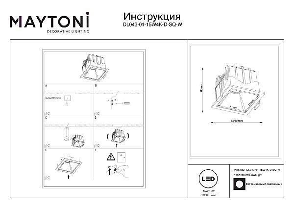 Встраиваемый светильник Alfa Led DL043-01-15W4K-D-SQ-W