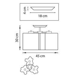 Высота min-max (см): 30 Ширина (см): 45 Вес (кг): 4,3 Кол-во ламп: 3хЕ27 Мощность max (W): 40 Цвет основания/цвет стекла или абажура: Chrome / White;