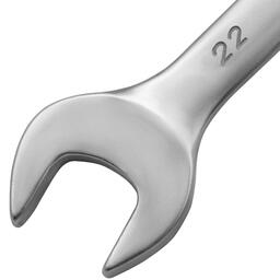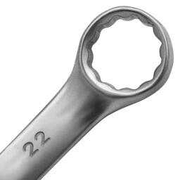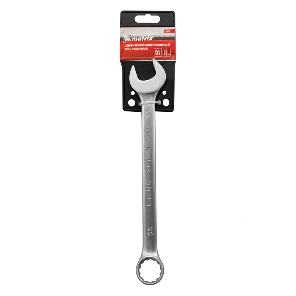 Ключ комбинированный Matrix 15118 из стали CrV, 22 мм, с покрытием «матовый хром», пригодится при проведении ремонтных работ дома или в гараже. С его помощью можно осуществлять быстрый монтаж и демонтаж крепежных элементов. Кольцевой зев обеспечивает удобство работы благодаря углу наклона 15 градусов относительно плоскости инструмента.ПреимуществаКлюч из хромованадиевой стали обладает необходимыми прочностными характеристиками и высокой сопротивляемостью деформации.Рабочая часть ключа прошла закалку до твердости 45 HRC в соответствии с требованиями ГОСТа.Матовое хромовое покрытие защищает ключ от образования коррозии.Накидные части с 12-гранным профилем позволяют охватить крепеж по всей поверхности, за счет чего снижается риск деформации его граней.Ключ удобно хранить и он не потеряется во время транспортировки, т.к. упакован в пластиковый держатель.