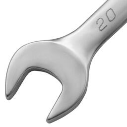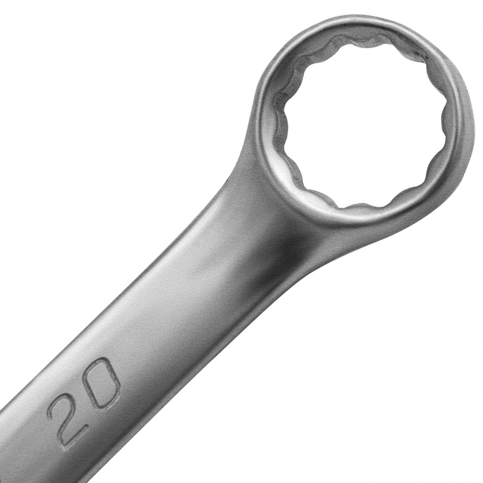 Ключ комбинированный Matrix 15116 из стали CrV, 20 мм, с покрытием «матовый хром», пригодится при проведении ремонтных работ дома или в гараже. С его помощью можно осуществлять быстрый монтаж и демонтаж крепежных элементов. Кольцевой зев обеспечивает удобство работы благодаря углу наклона 15 градусов относительно плоскости инструмента.ПреимуществаКлюч из хромованадиевой стали обладает необходимыми прочностными характеристиками и высокой сопротивляемостью деформации.Рабочая часть ключа прошла закалку до твердости 45 HRC в соответствии с требованиями ГОСТа.Матовое хромовое покрытие защищает ключ от образования коррозии.Накидные части с 12-гранным профилем позволяют охватить крепеж по всей поверхности, за счет чего снижается риск деформации его граней.Ключ удобно хранить и он не потеряется во время транспортировки, т.к. упакован в пластиковый держатель.