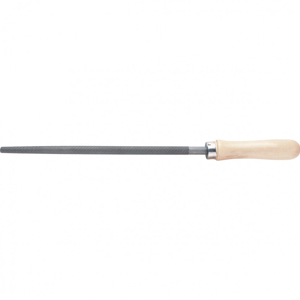 Напильник предназначен для качественной обработки круглых отверстий твердых материалов. Инструмент имеет двойную перекрестную насечку №2. Площадь сечения напильника уменьшается от середины к носу. Напильник изготовлен из углеродистой стали. Поставляется в комплекте с деревянной рукояткой, которая покрыта бесцветным лаком, защищающим древесину от рассыхания и набухания.