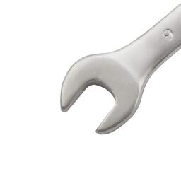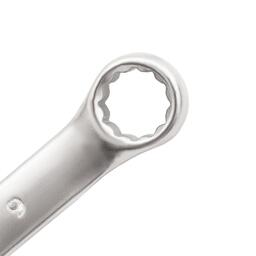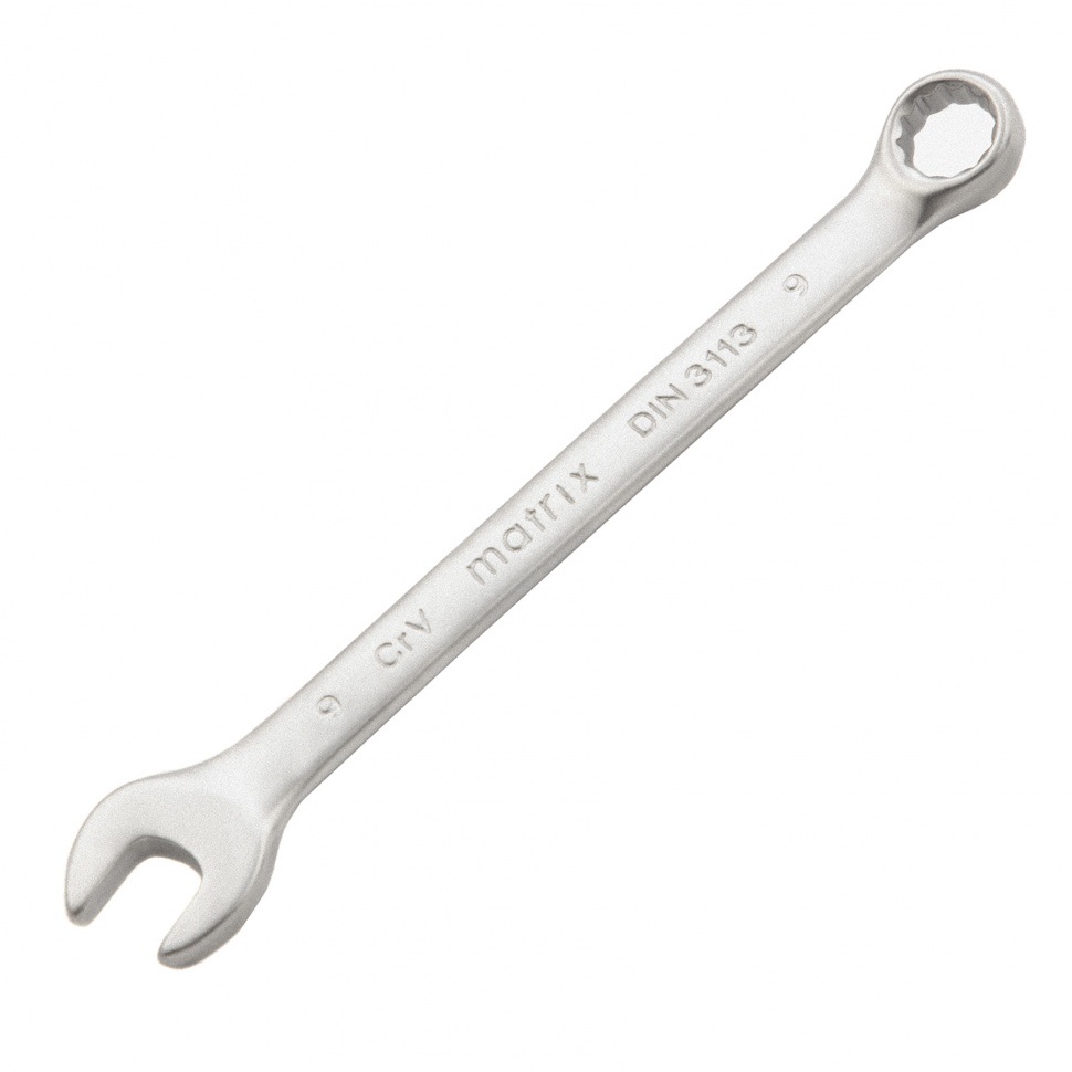 Ключ комбинированный Matrix 15105 из стали CrV, 9 мм, с покрытием «матовый хром», пригодится при проведении ремонтных работ дома или в гараже. С его помощью можно осуществлять быстрый монтаж и демонтаж крепежных элементов. Кольцевой зев обеспечивает удобство работы благодаря углу наклона 15 градусов относительно плоскости инструмента.ПреимуществаКлюч из хромованадиевой стали обладает необходимыми прочностными характеристиками и высокой сопротивляемостью деформации.Рабочая часть ключа прошла закалку до твердости 45 HRC в соответствии с требованиями ГОСТа.Матовое хромовое покрытие защищает ключ от образования коррозии.Накидные части с 12-гранным профилем позволяют охватить крепеж по всей поверхности, за счет чего снижается риск деформации его граней.Ключ удобно хранить и он не потеряется во время транспортировки, т.к. упакован в пластиковый держатель.