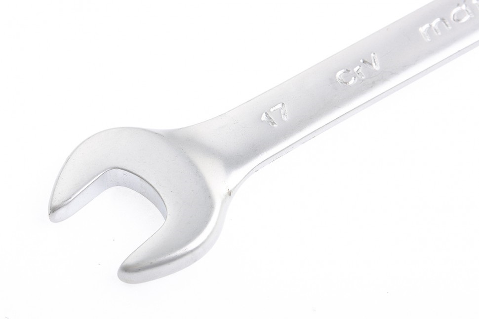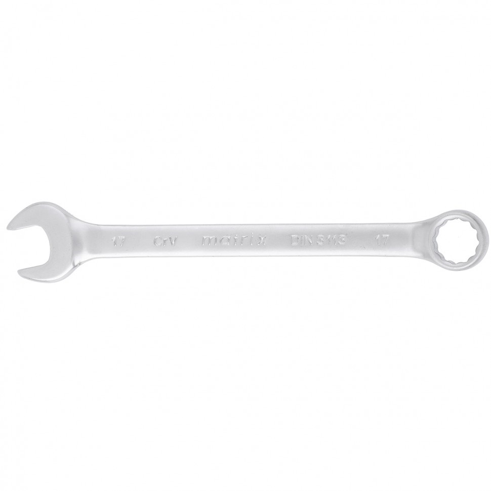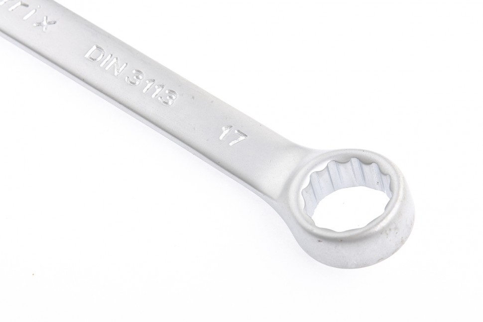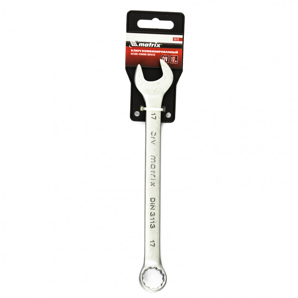 Ключ комбинированный Matrix 15113 из стали CrV, 17 мм, с покрытием «матовый хром», пригодится при проведении ремонтных работ дома или в гараже. С его помощью можно осуществлять быстрый монтаж и демонтаж крепежных элементов. Кольцевой зев обеспечивает удобство работы благодаря углу наклона 15 градусов относительно плоскости инструмента.ПреимуществаКлюч из хромованадиевой стали обладает необходимыми прочностными характеристиками и высокой сопротивляемостью деформации.Рабочая часть ключа прошла закалку до твердости 45 HRC в соответствии с требованиями ГОСТа.Матовое хромовое покрытие защищает ключ от образования коррозии.Накидные части с 12-гранным профилем позволяют охватить крепеж по всей поверхности, за счет чего снижается риск деформации его граней.Ключ удобно хранить и он не потеряется во время транспортировки, т.к. упакован в пластиковый держатель.