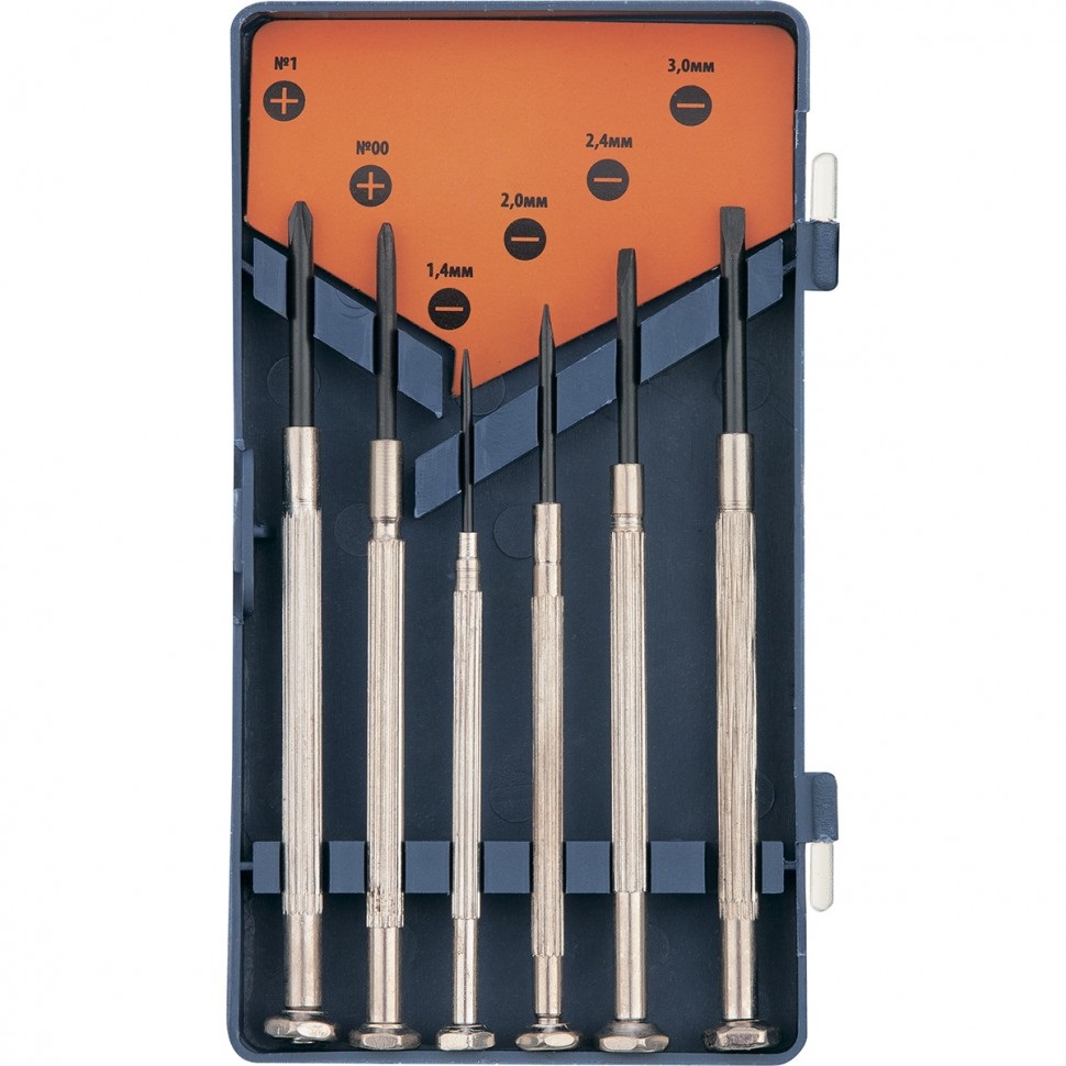 Отвертки со свободно вращающимися затыльниками рукояток предназначены для точных механических работ и операций с мелкими деталями. Рукоятки отверток выполнены из стали со специальным рифлением для защиты от выскальзывания из рук. Отвертки укомплектованы в пластиковый бокс.