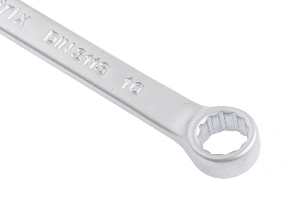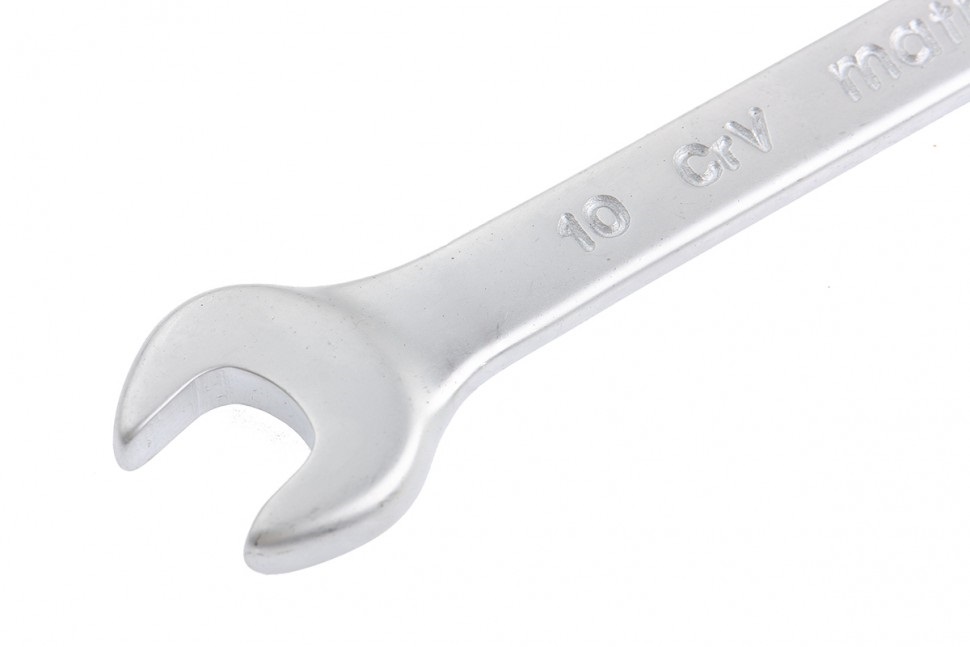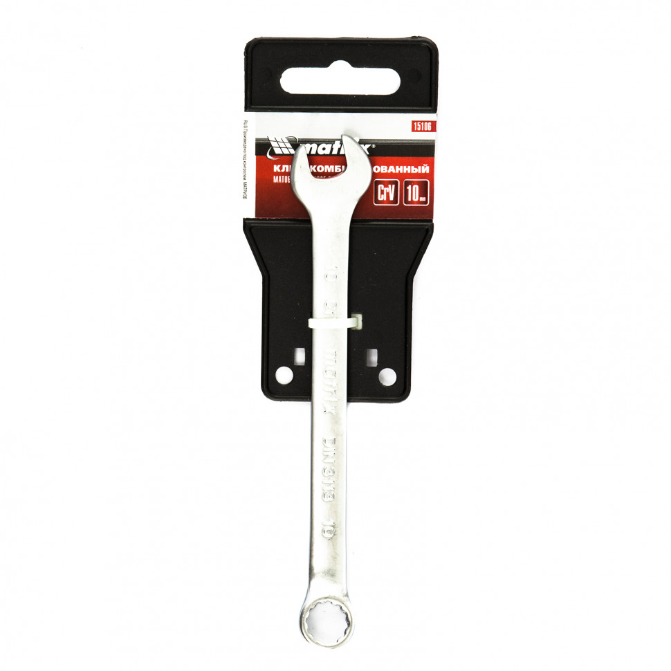 Ключ комбинированный Matrix 15106 из стали CrV, 10 мм, с покрытием «матовый хром», пригодится при проведении ремонтных работ дома или в гараже. С его помощью можно осуществлять быстрый монтаж и демонтаж крепежных элементов. Кольцевой зев обеспечивает удобство работы благодаря углу наклона 15 градусов относительно плоскости инструмента.ПреимуществаКлюч из хромованадиевой стали обладает необходимыми прочностными характеристиками и высокой сопротивляемостью деформации.Рабочая часть ключа прошла закалку до твердости 45 HRC в соответствии с требованиями ГОСТа.Матовое хромовое покрытие защищает ключ от образования коррозии.Накидные части с 12-гранным профилем позволяют охватить крепеж по всей поверхности, за счет чего снижается риск деформации его граней.Ключ удобно хранить и он не потеряется во время транспортировки, т.к. упакован в пластиковый держатель.