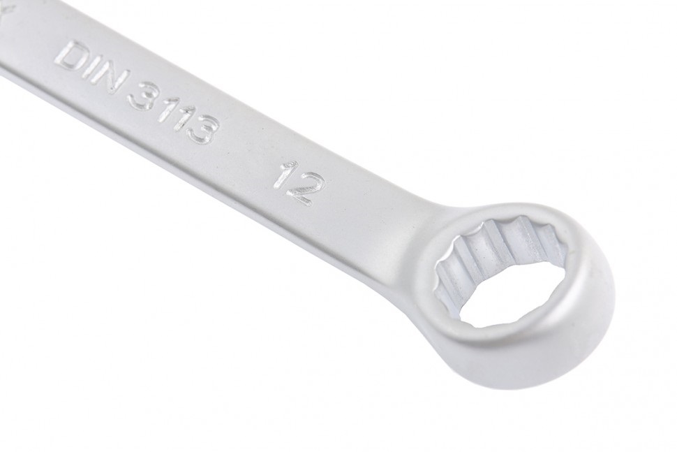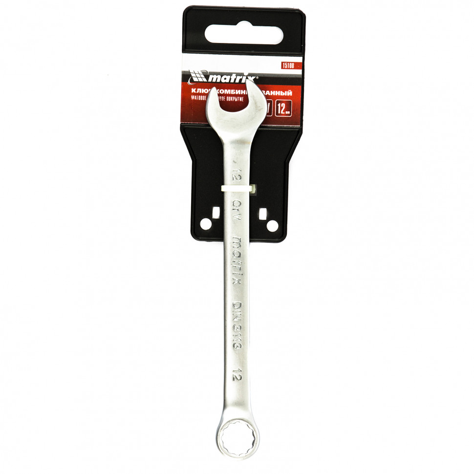 Ключ комбинированный Matrix 15108 из стали CrV, 12 мм, с покрытием «матовый хром», пригодится при проведении ремонтных работ дома или в гараже. С его помощью можно осуществлять быстрый монтаж и демонтаж крепежных элементов. Кольцевой зев обеспечивает удобство работы благодаря углу наклона 15 градусов относительно плоскости инструмента.ПреимуществаКлюч из хромованадиевой стали обладает необходимыми прочностными характеристиками и высокой сопротивляемостью деформации.Рабочая часть ключа прошла закалку до твердости 45 HRC в соответствии с требованиями ГОСТа.Матовое хромовое покрытие защищает ключ от образования коррозии.Накидные части с 12-гранным профилем позволяют охватить крепеж по всей поверхности, за счет чего снижается риск деформации его граней.Ключ удобно хранить и он не потеряется во время транспортировки, т.к. упакован в пластиковый держатель.