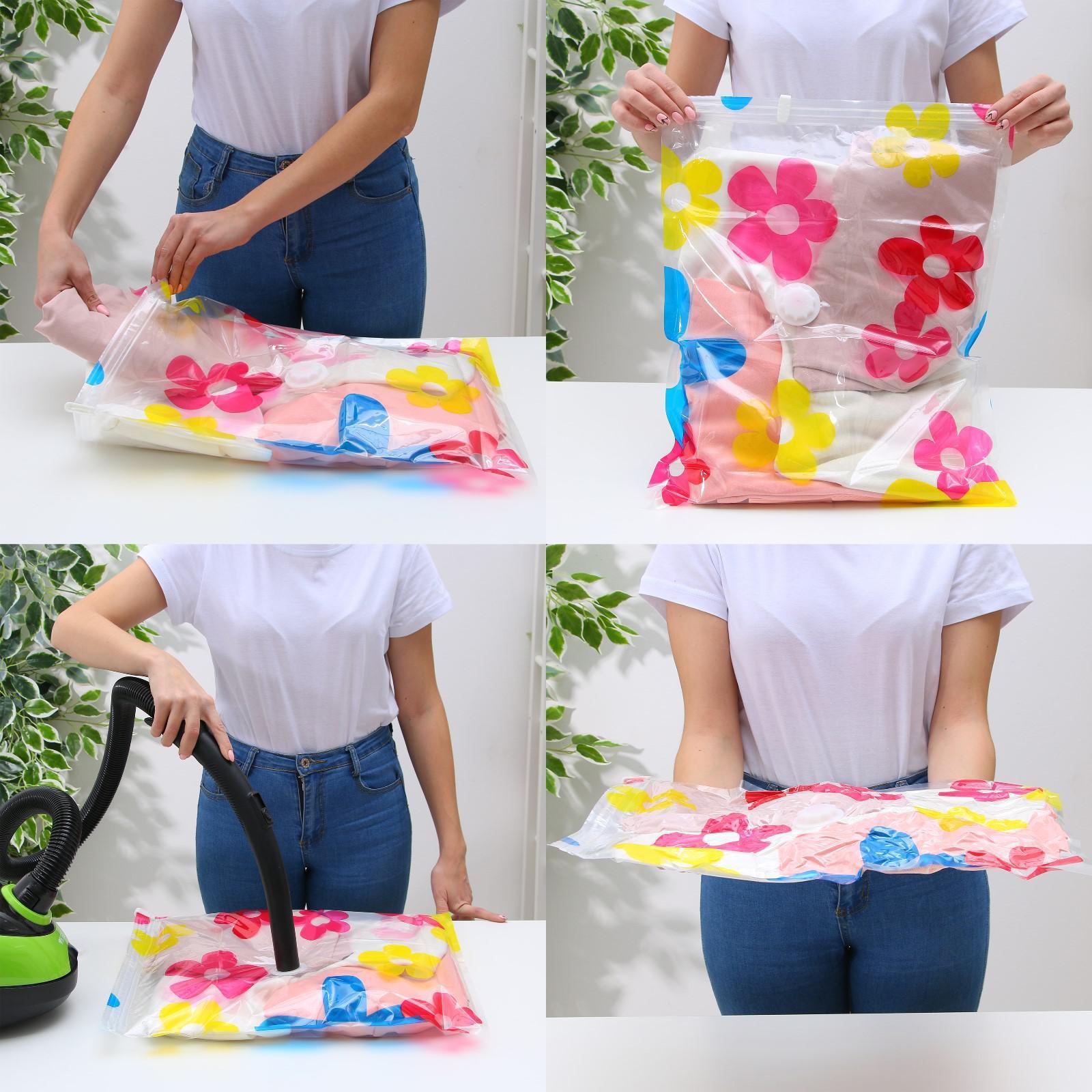 Упаковочные вакуумные пакеты отлично подходят для хранения вещей таким образом, чтобы они не занимали слишком много места. В действительности, пространство, занимаемое упакованной в такой пакет одеждой, уменьшается вплоть до 50-80%.