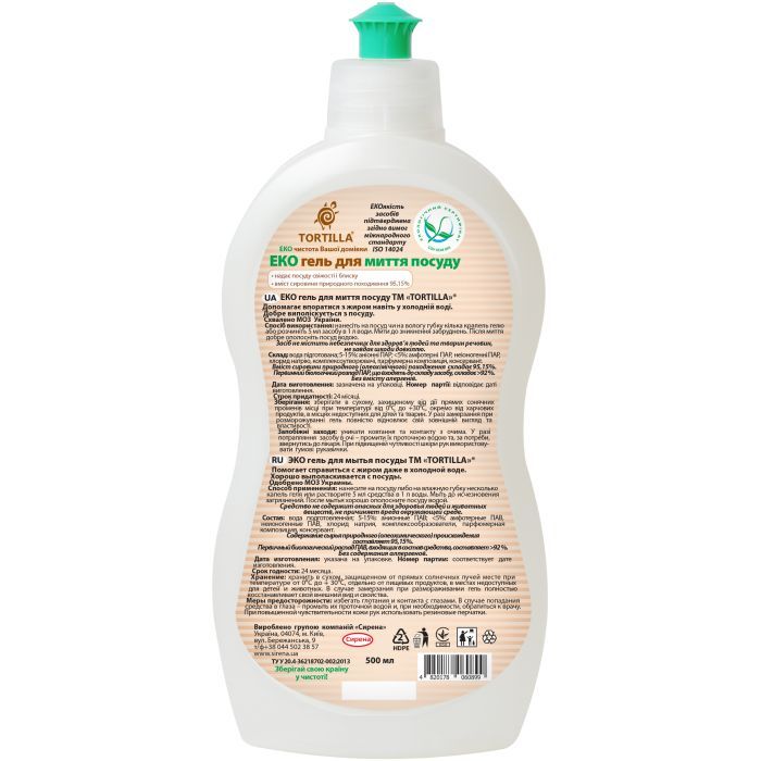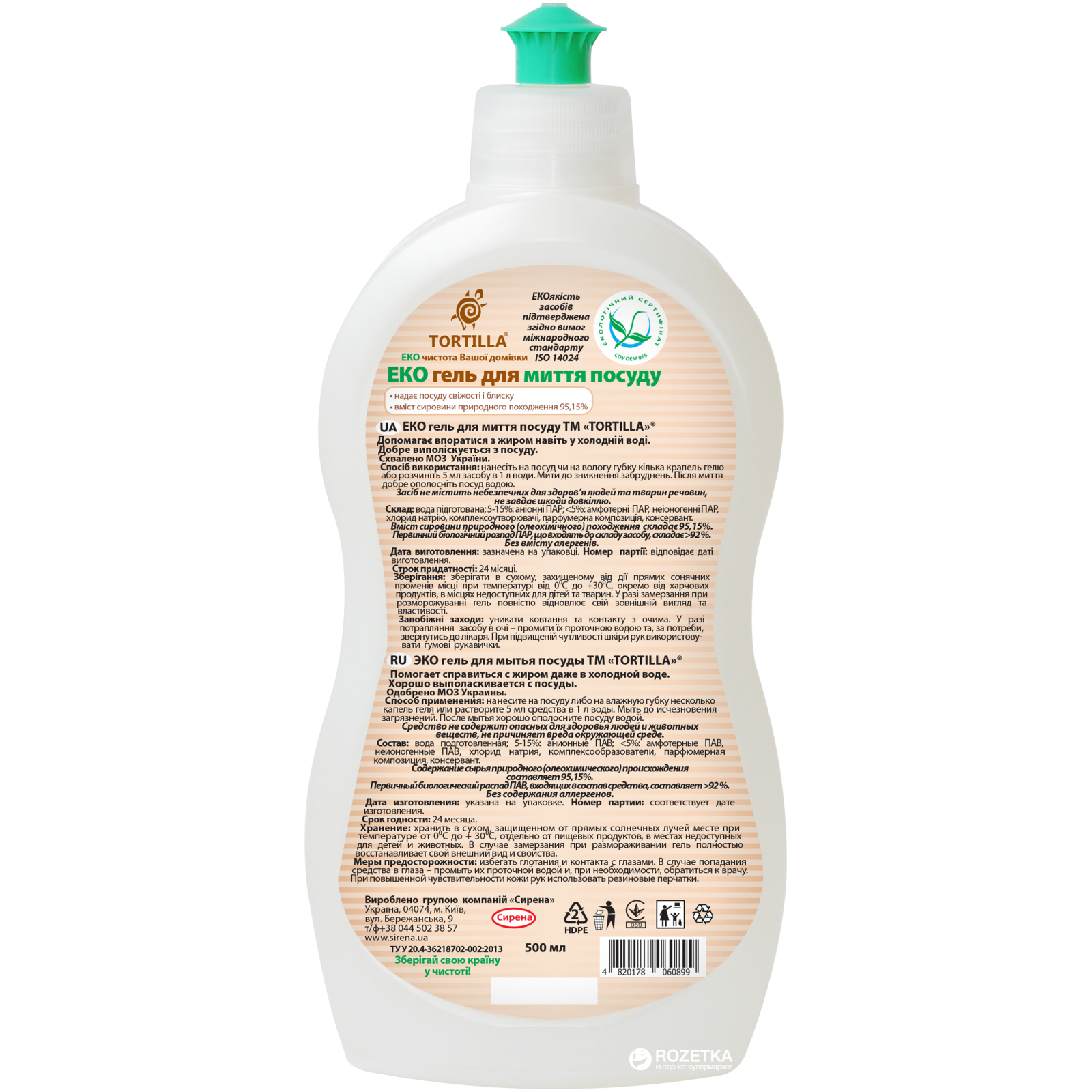 Засіб для ручного миття посуду Tortilla Еко гель 500 мл (4820178060899)