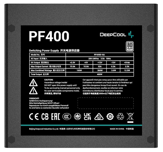 Deepcool PF400 80+ (ATX 2.4 400W, PWM 120mm fan, 80 PLUS, Active PFC) RET