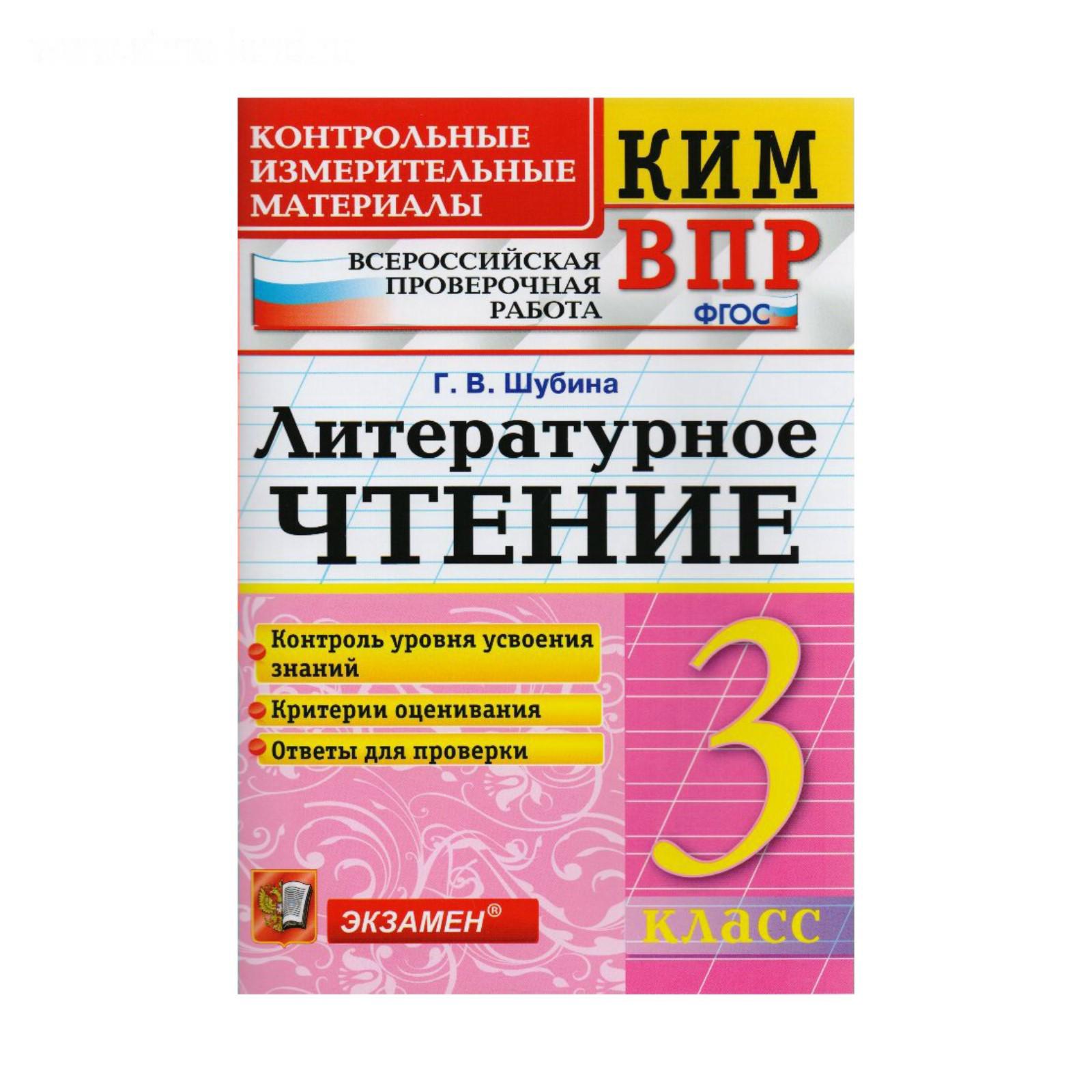 Литературное чтение. 3 класс. Всероссийская проверочная работа. Контрольно-измерительные материалы. Шубина Г. В.
