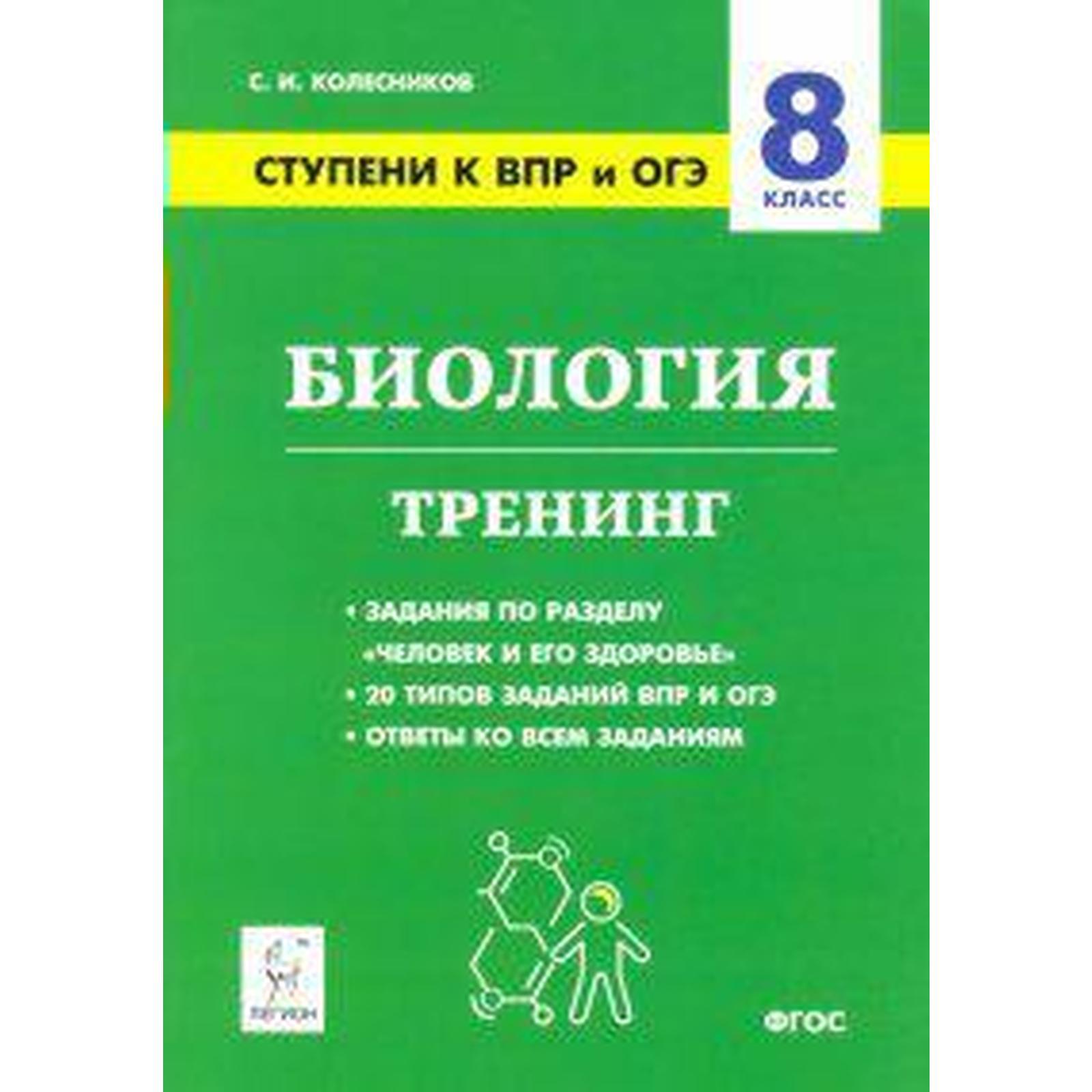 Наше учебное пособие предназначено для подготовки к всероссийским проверочным работам (ВПР) по биологии в 8-х классах.. Пособие содержит задания 20 различных типов по разделу школьного курса биологии «Человек и его здоровье», встречающихся в материалах ВПР и ОГЭ, а также ответы к ним.. Учебно-методическое пособие предназначено прежде всего для школьников 8-х классов, готовящихся к ВПР. Оно может быть использовано учителями биологии и для организации подготовки школьников к ВПР и ОГЭ, а также к другим формам контроля и аттестации в 8-х классах. Обо всём этом и не только в книге Биология. 8 класс. Ступени к ВПР и ОГЭ. Тренинг (Сергей Ильич Колесников)