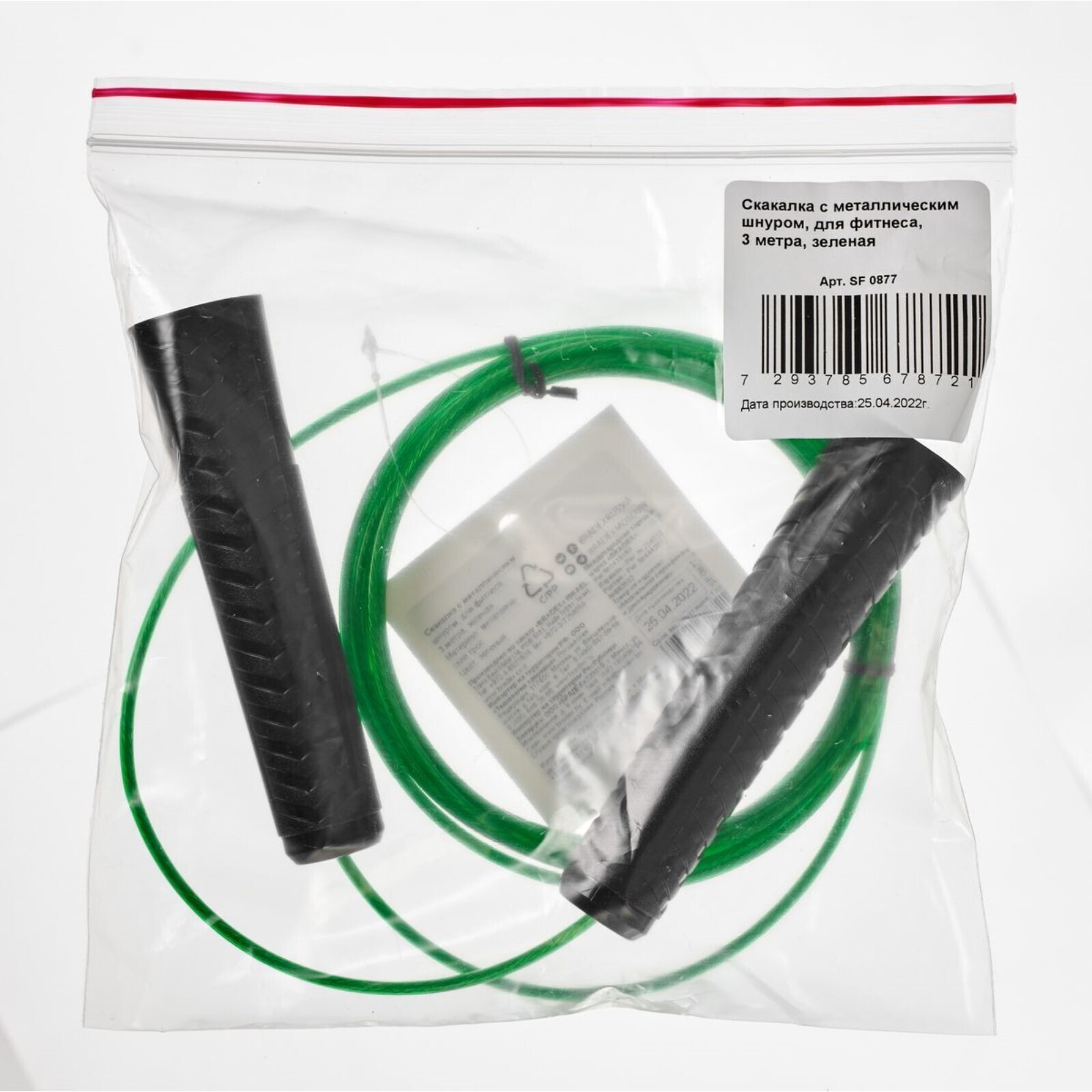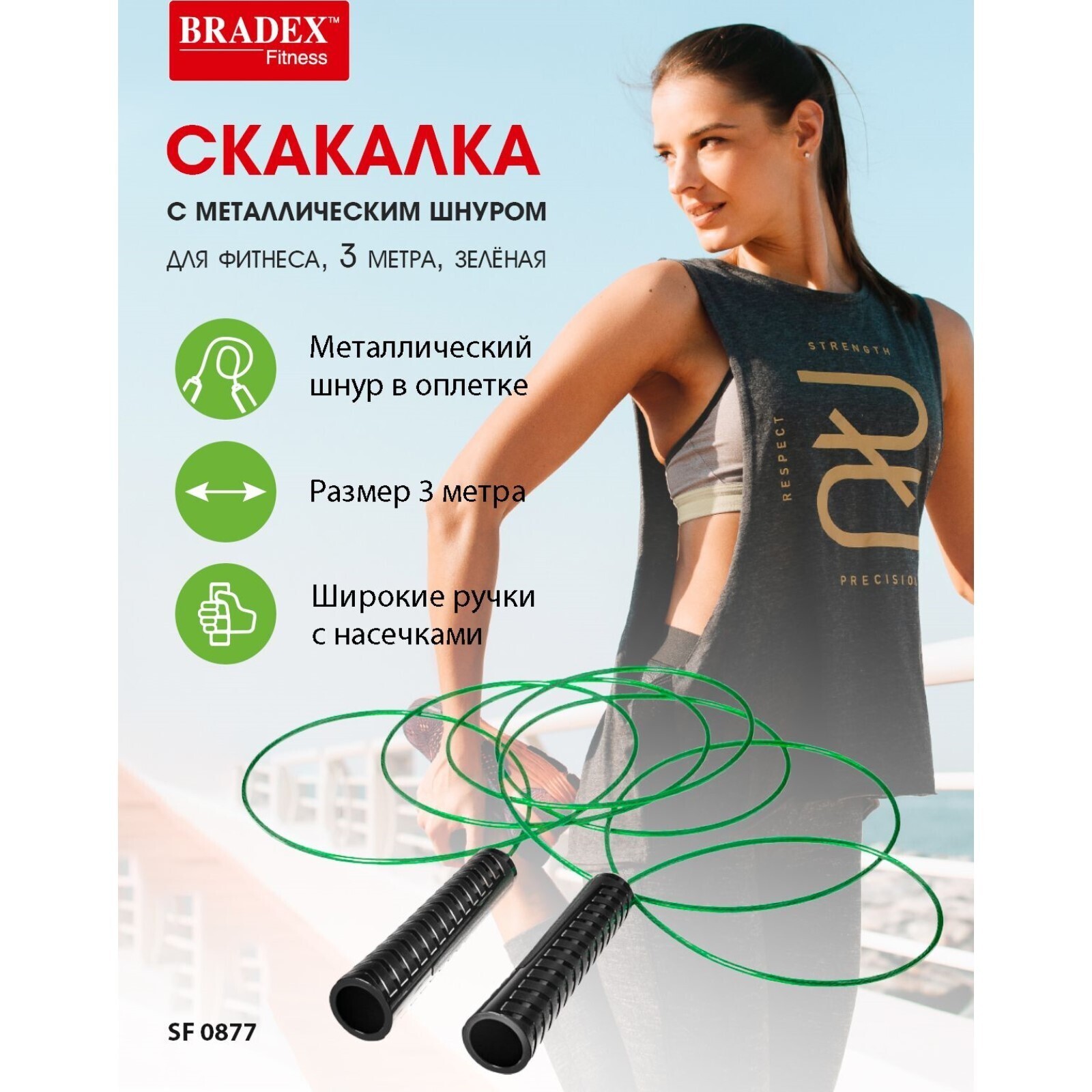 Скакалка с металлическим шнуром Bradex SF 0877, для фитнеса, 3 метра, зеленая