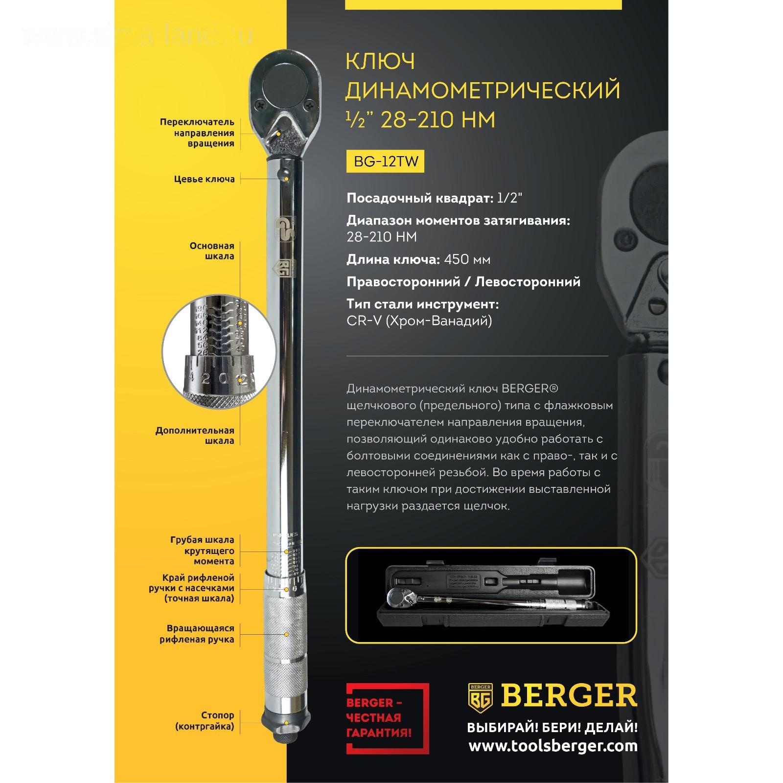 Ключ динамометрический BERGER BG2158, 1/2", 28-210 Нм