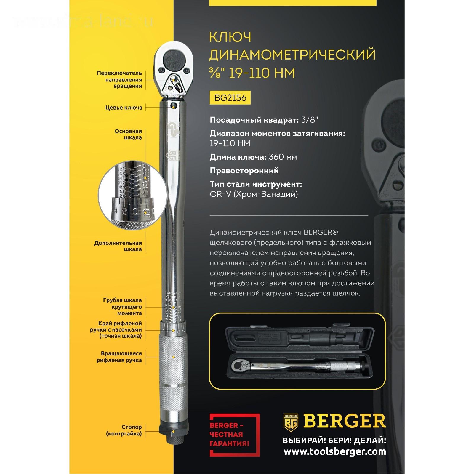 Ключ динамометрический BERGER BG2156, 3/8", 19-110 Нм