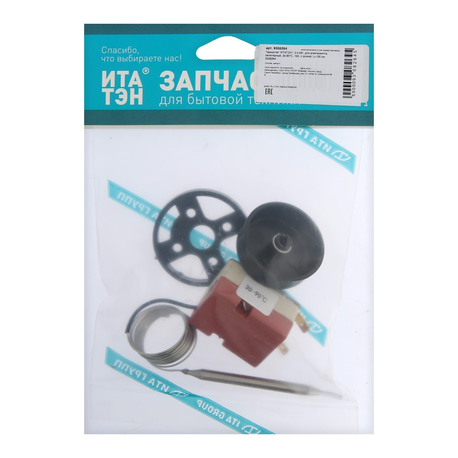 Термостат "ИТАТЭН", 3.5 кВт, для электрокотла, капилярный, 30-90°C, 16А, с ручкой, L=100 см