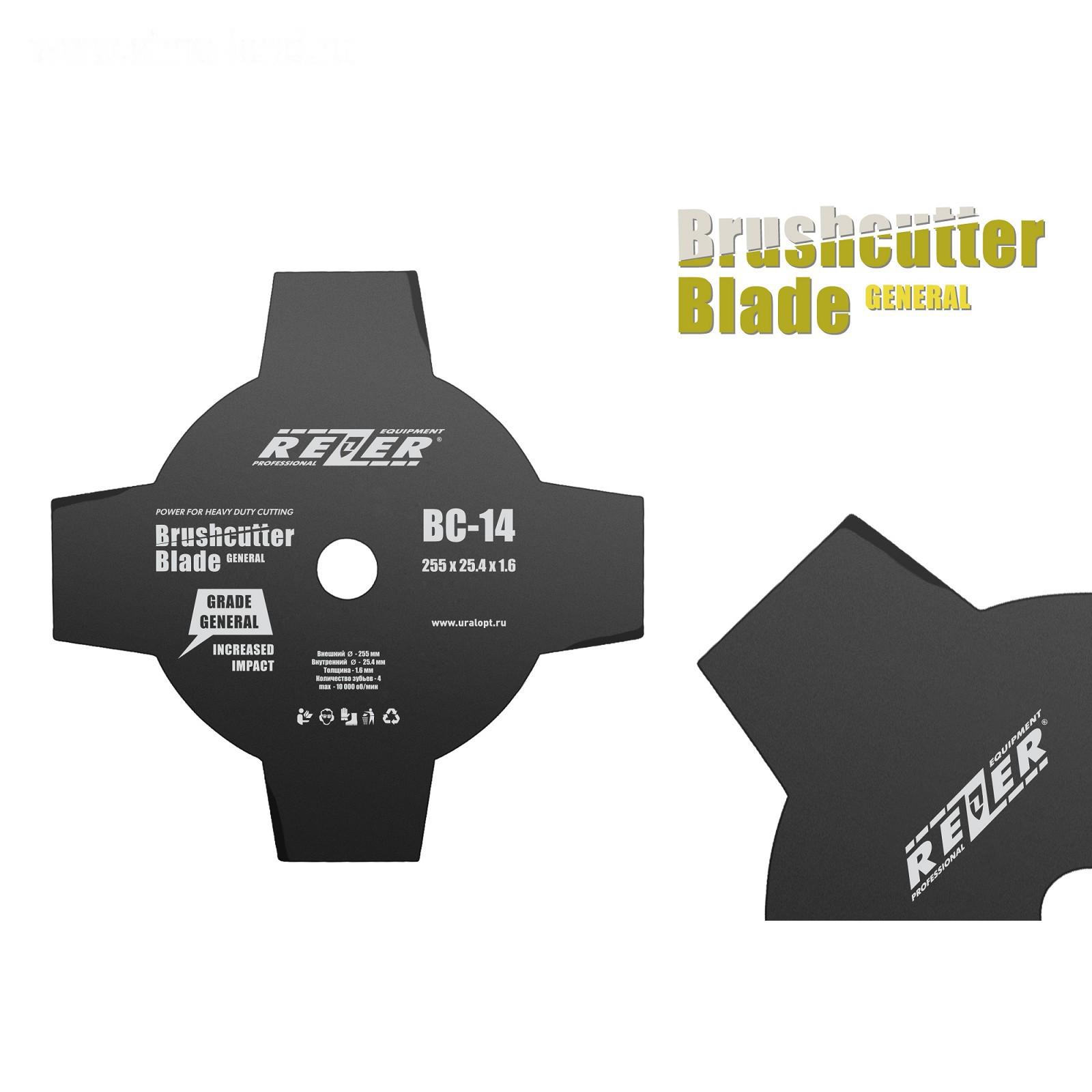 Нож для триммера Rezer ВС-14, 255x25.4x1.6 мм, 4-х лучевой