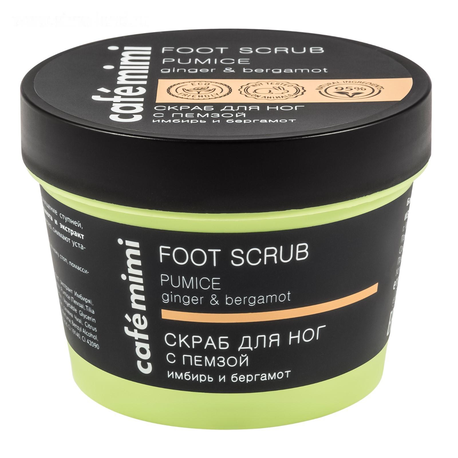 Скраб для ног Cafe Mimi с пемзой, имбирь и бергамот, 110 мл