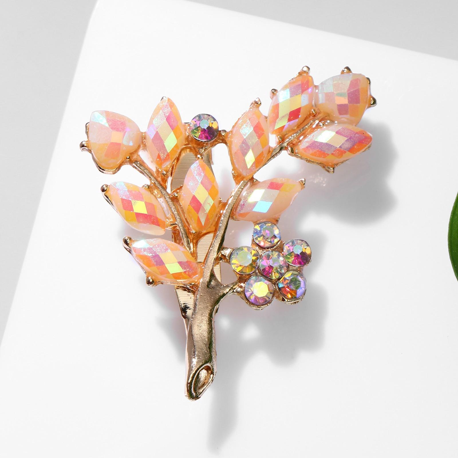 Брошь "Цветочная ветвь" дуэт, цвет радужный в золоте