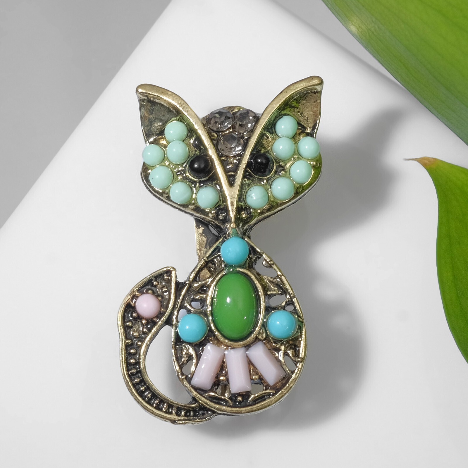 Брошь этника "Лисичка", цветная в чернёном золоте