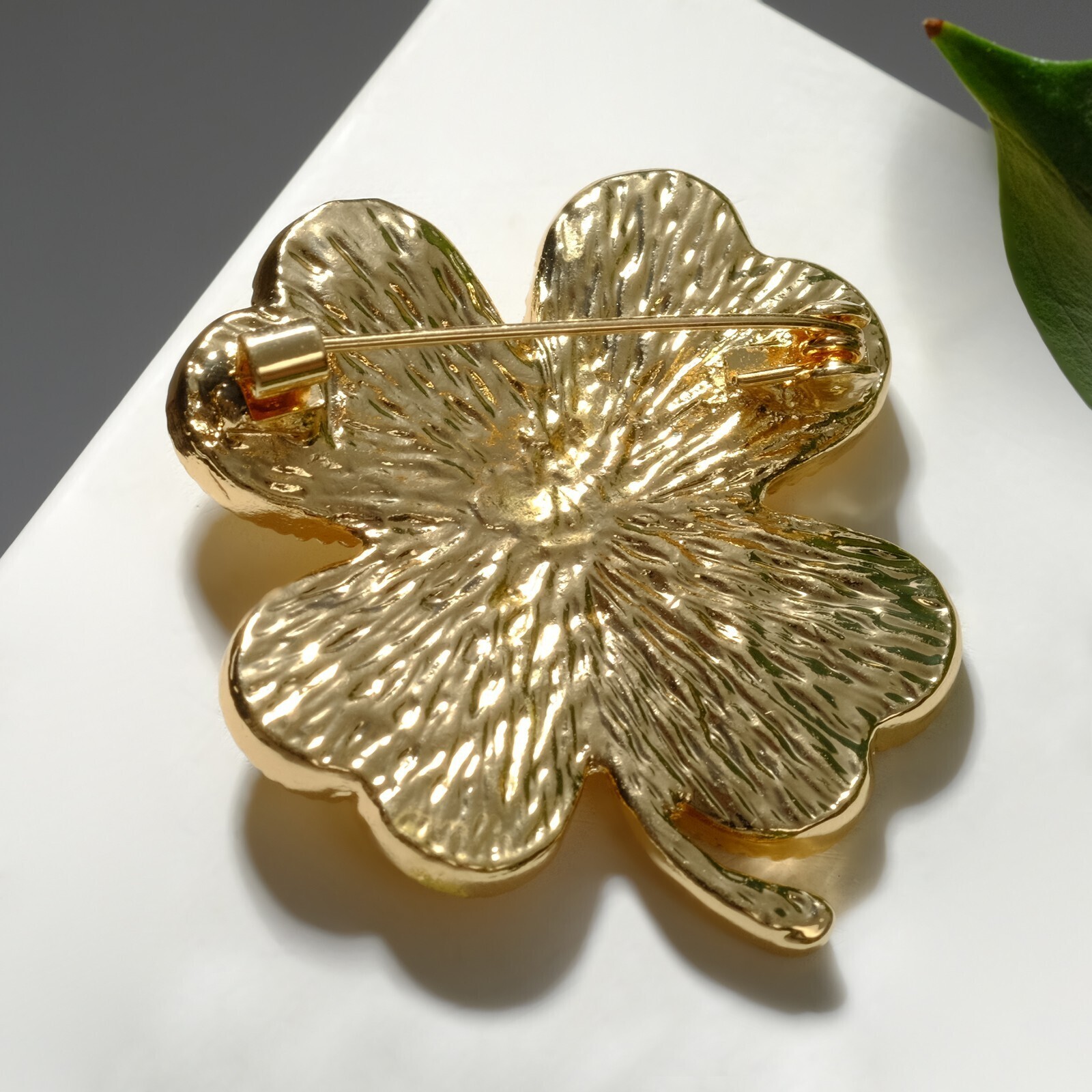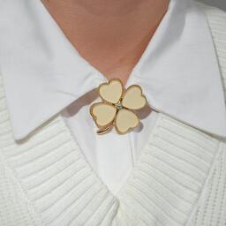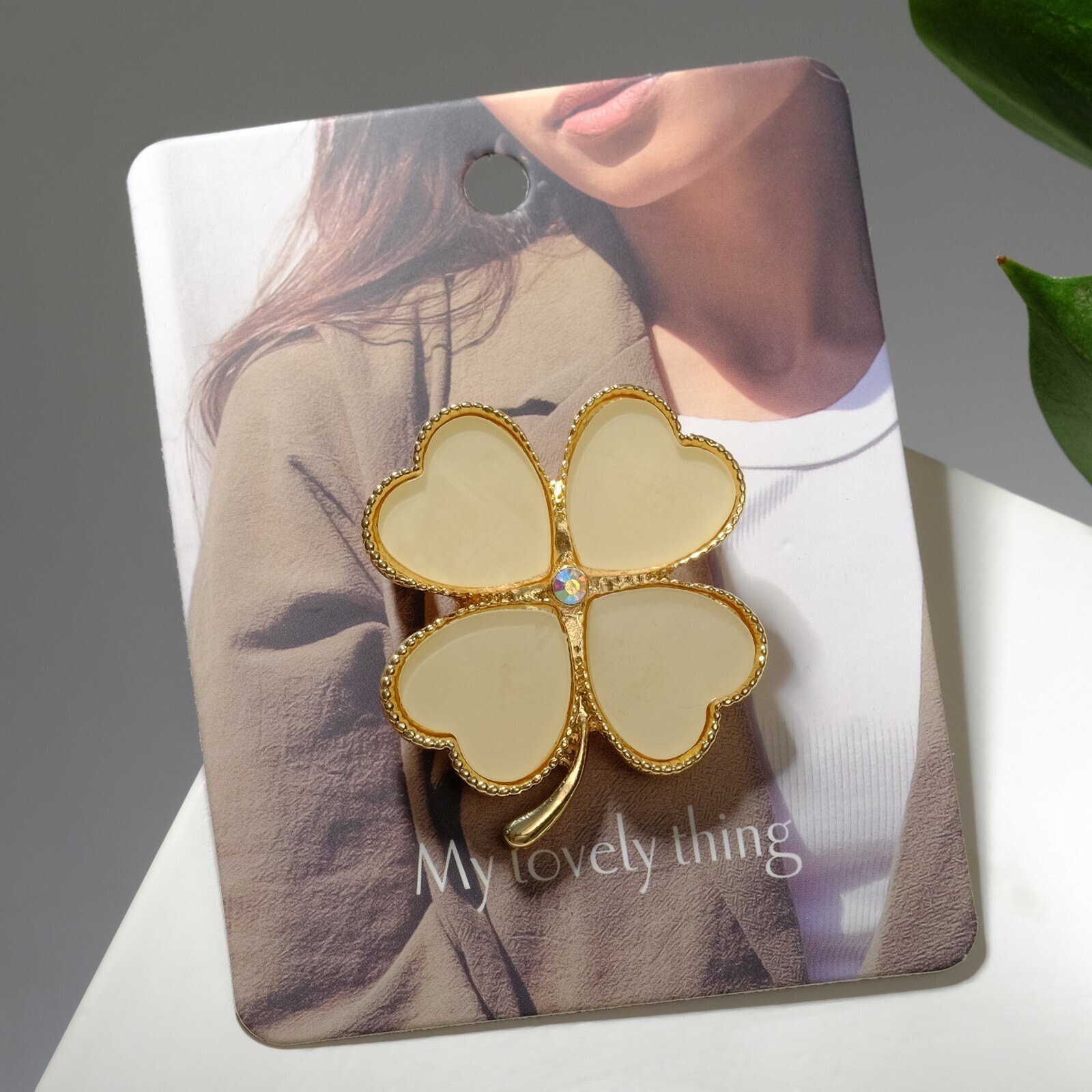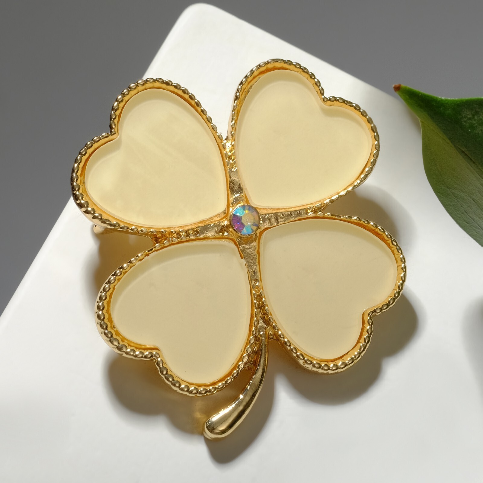 Брошь "Клевер" крупный, цвет бежевый в золоте