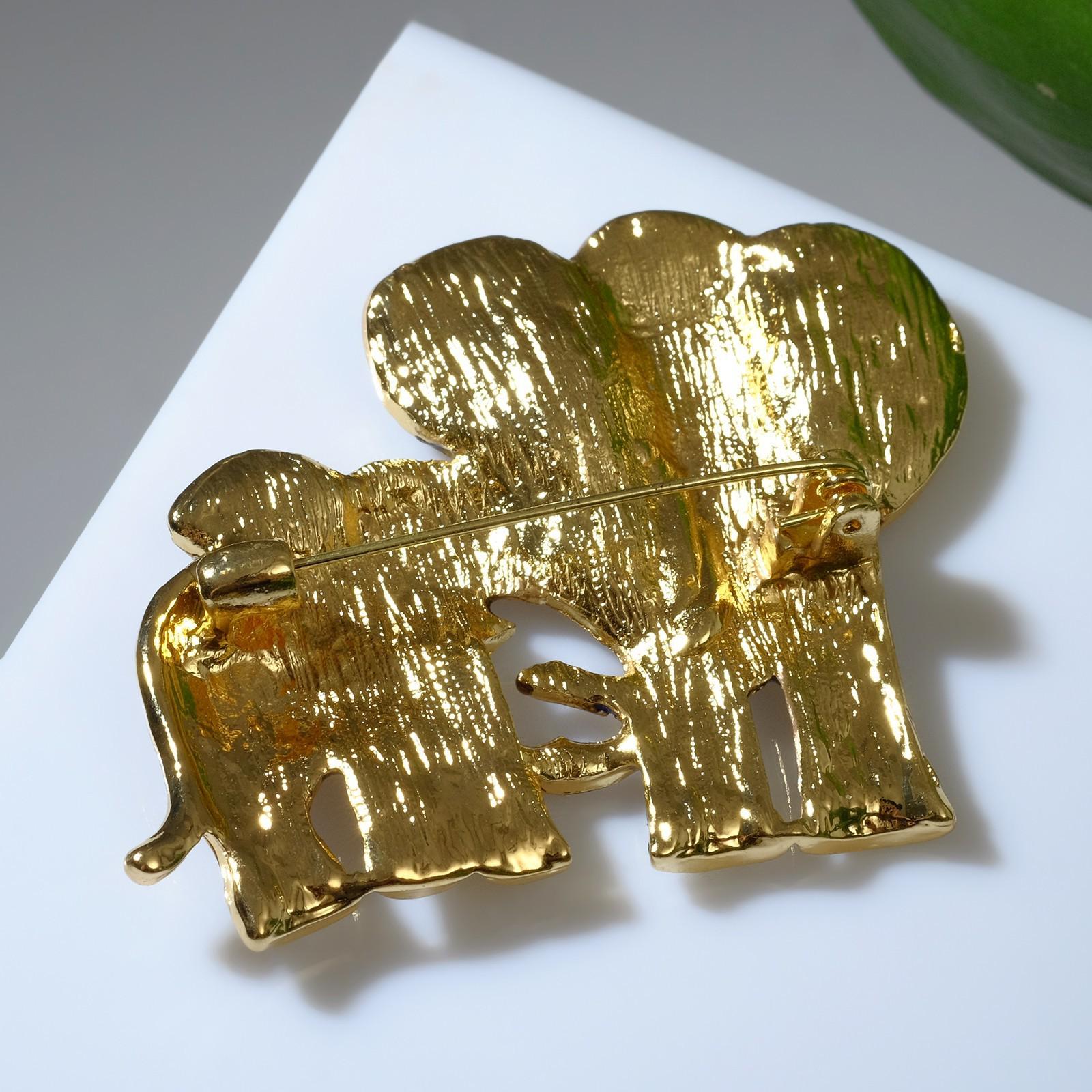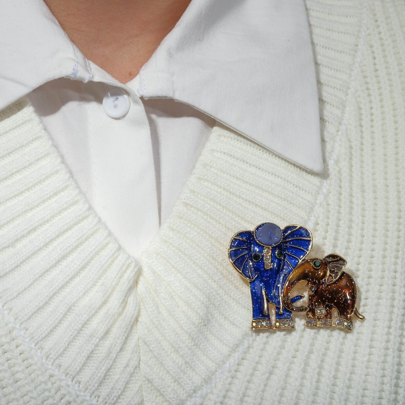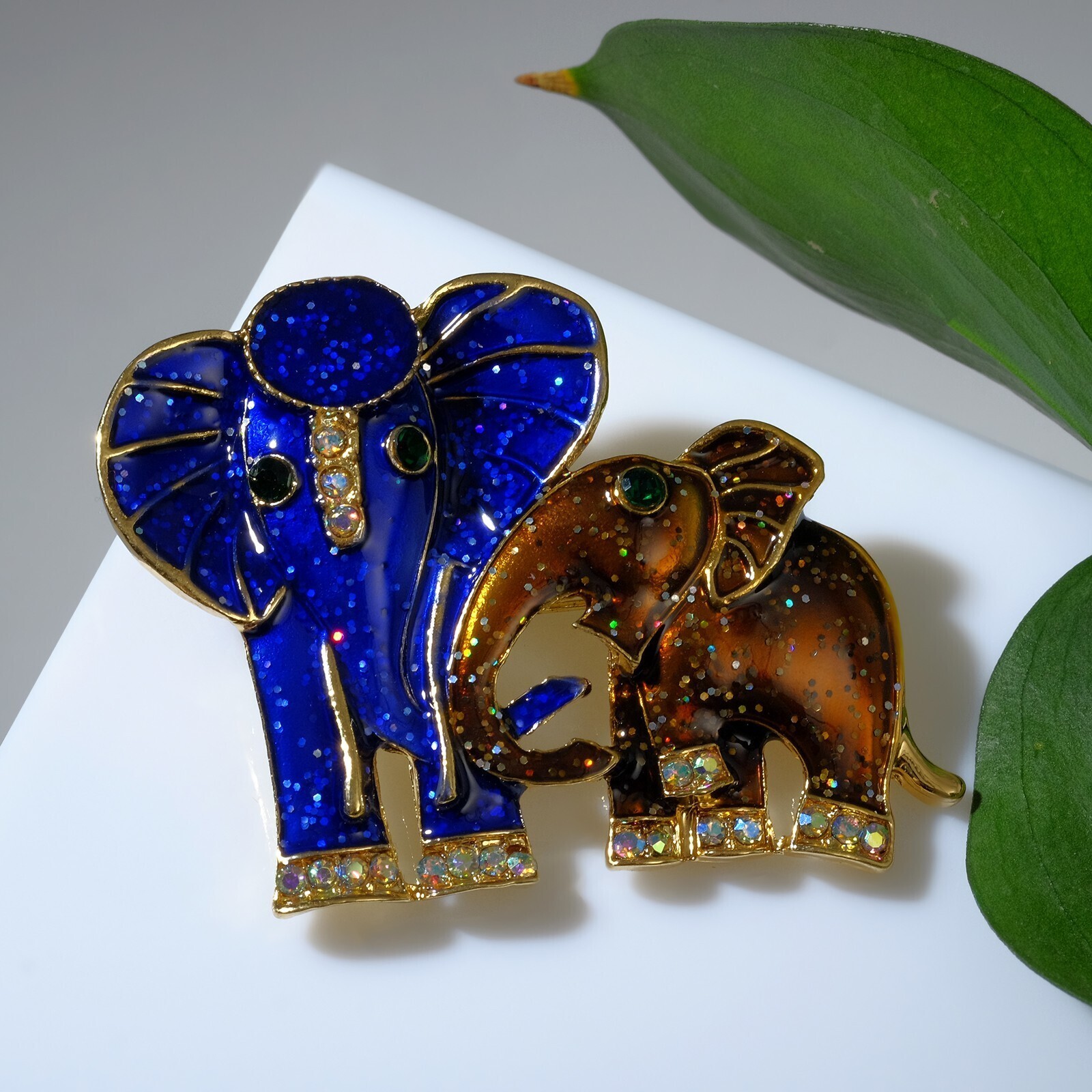 Брошь "Слоны", цвет сине-коричневый в золоте
