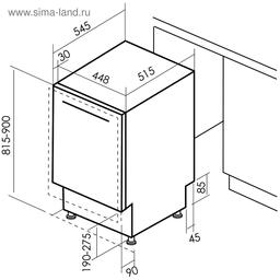Посудомоечная машина MBS DW-451, встраиваемая, класс А++, 10 комплектов, 6 программ