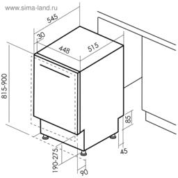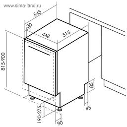Посудомоечная машина MBS DW-455, встраиваемая, класс А++, 9 комплектов, 5 программ