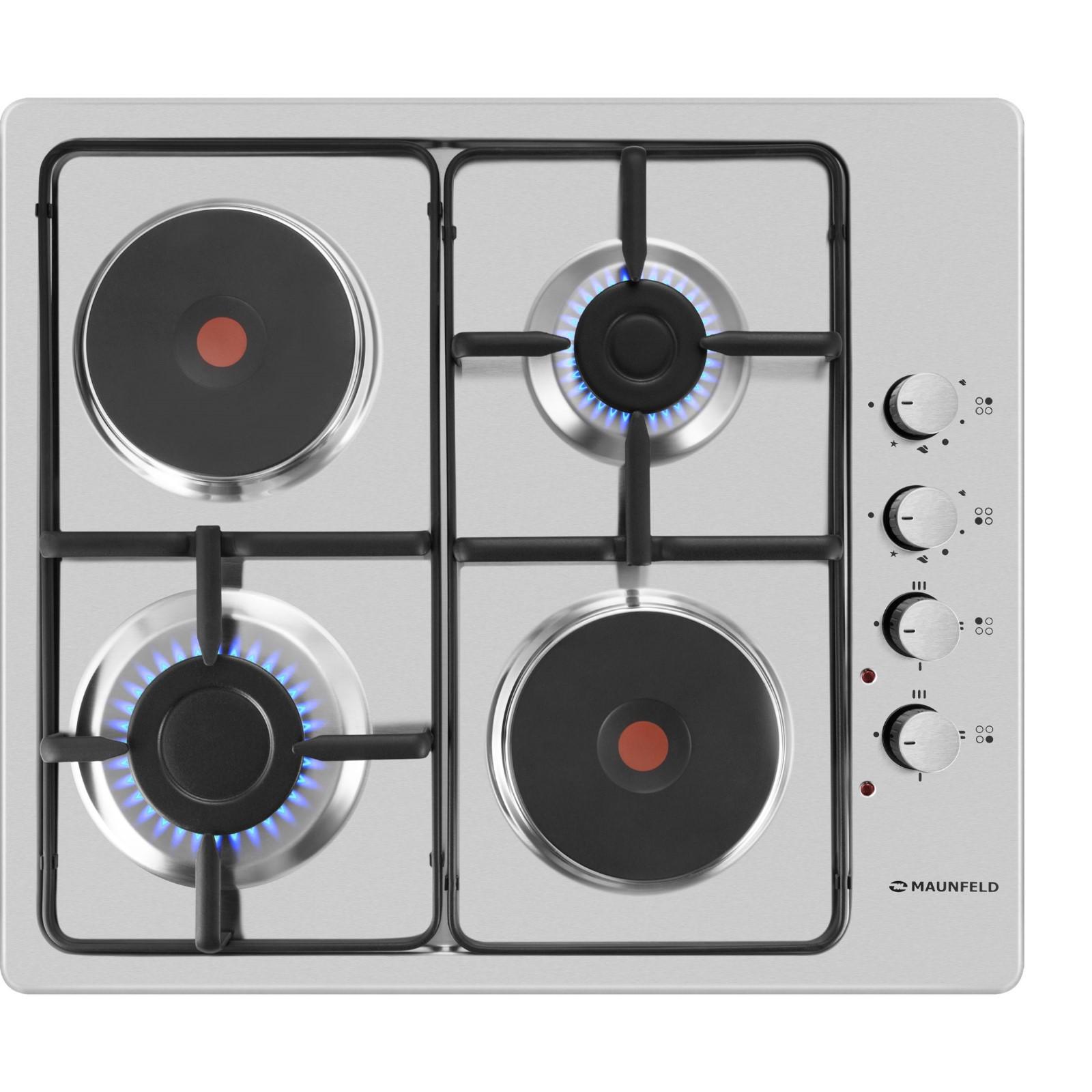 Варочная поверхность MAUNFELD EEHS.64.5ES/KG, комбинированная, 4 конфорки, серебристая