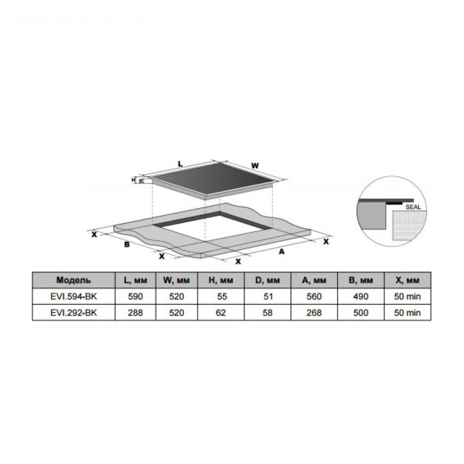 • Ширина встраивания, см 56