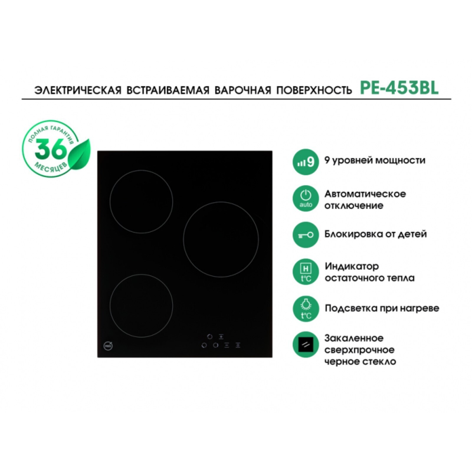 Варочная поверхность MBS PE-453BL, электрическая, 3 конфорки, сенсор, чёрная