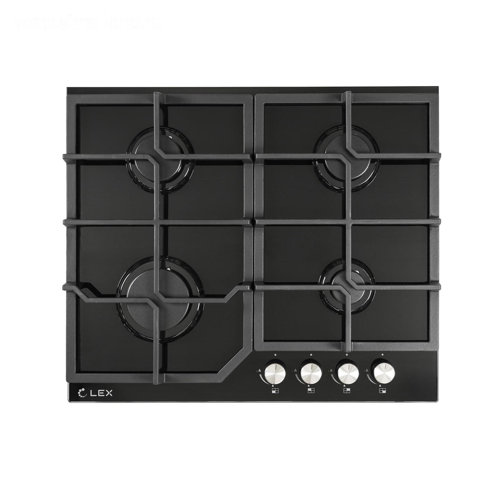 Варочная поверхность Lex GVG 642 BL, газовая, 4 конфорки, цвет чёрное стекло