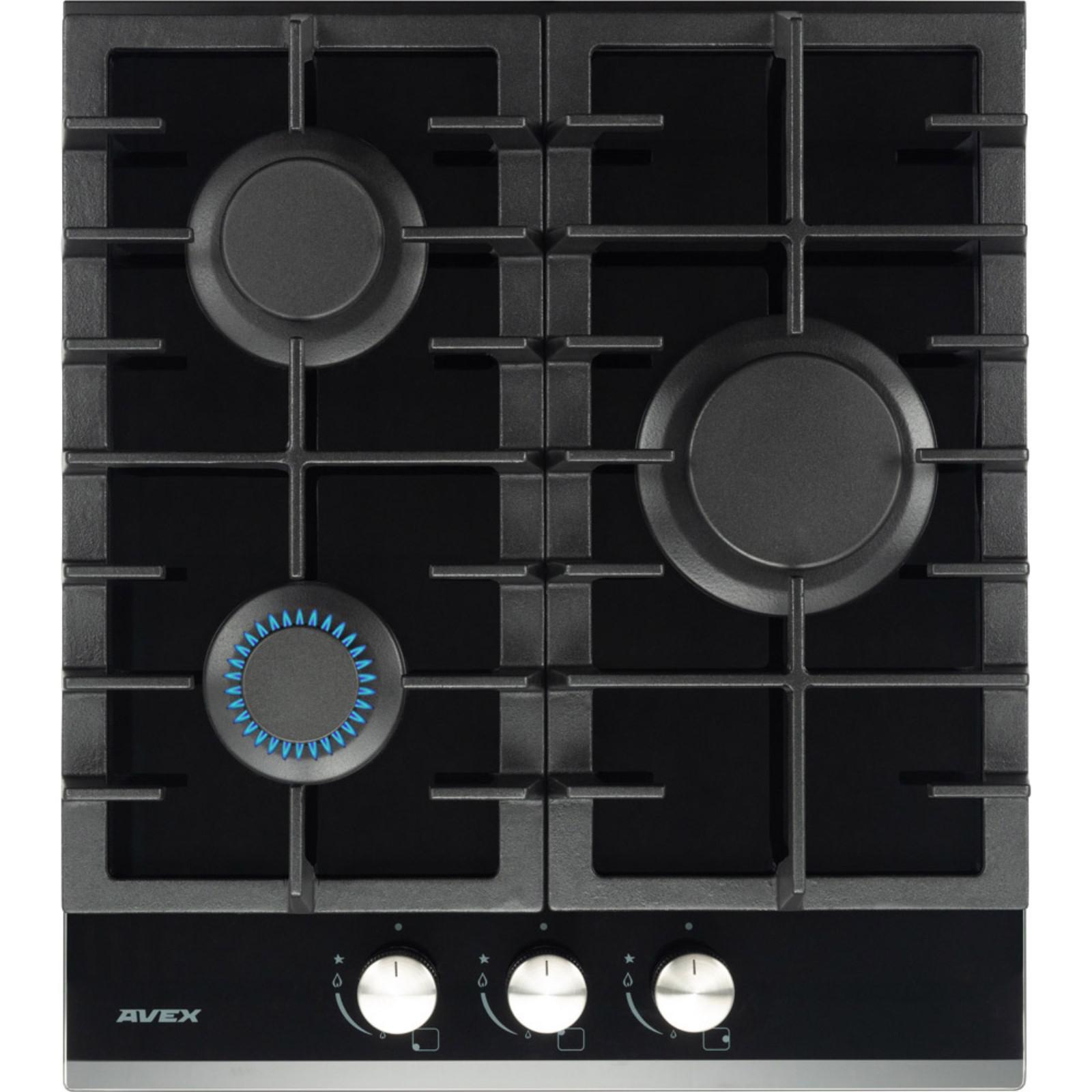 Варочная поверхность AVEX HM 4531 B, газовая, 3 конфорки, 43х48 см, чёрная