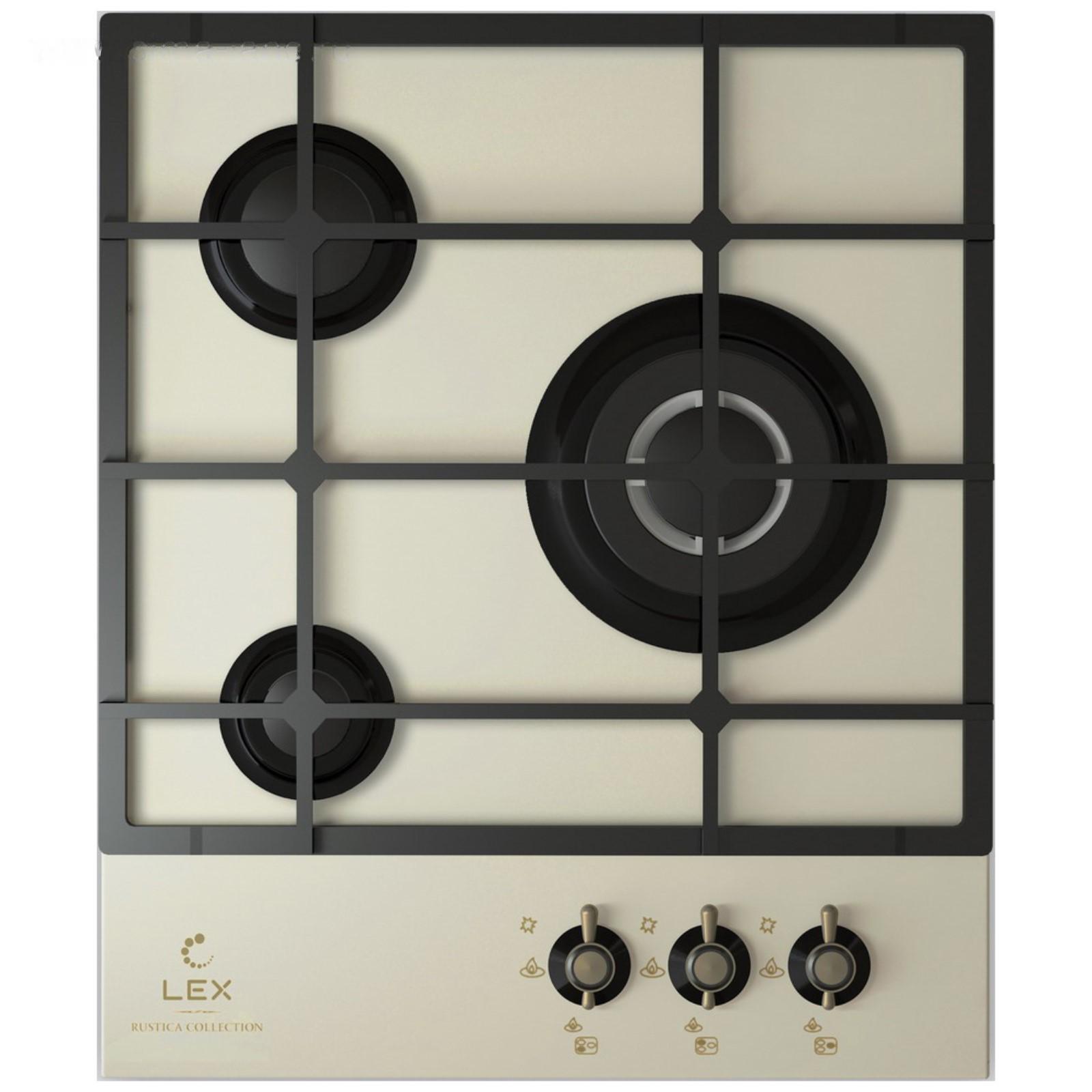 Варочная поверхность Lex GVG 431C IV, газовая, 3 конфорки, бежевое стекло/бронза