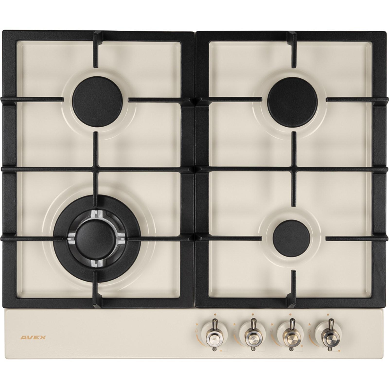 Варочная поверхность AVEX HS 6144 YR, газовая, 4 конфорки, 56х48 см, WOK, газ-контр, бежевая