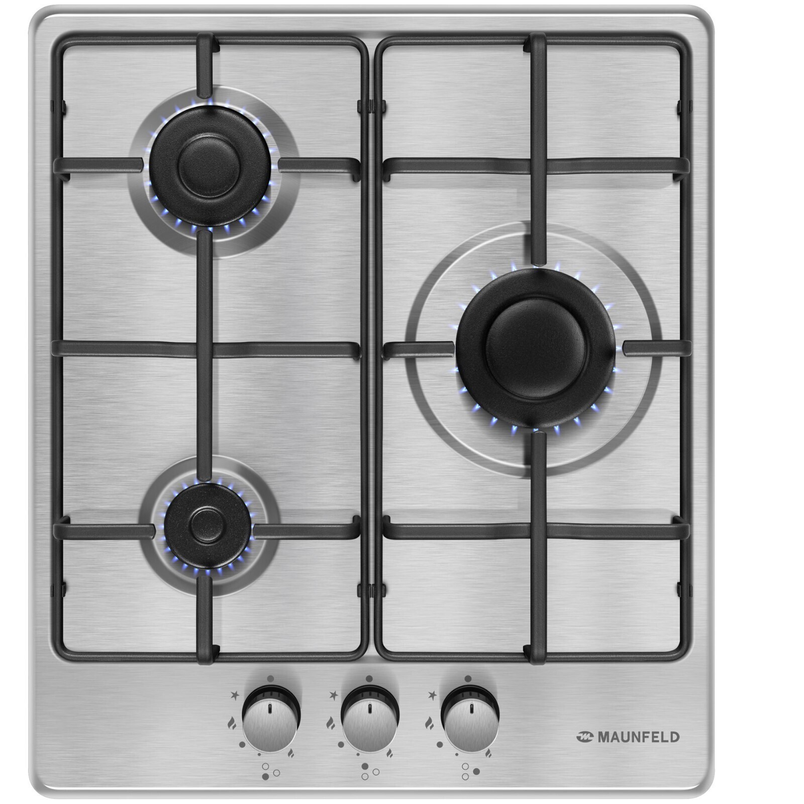 Варочная поверхность MAUNFELD EGHS.43.3STS-ES, газовая, 3 конфорки, серебристая