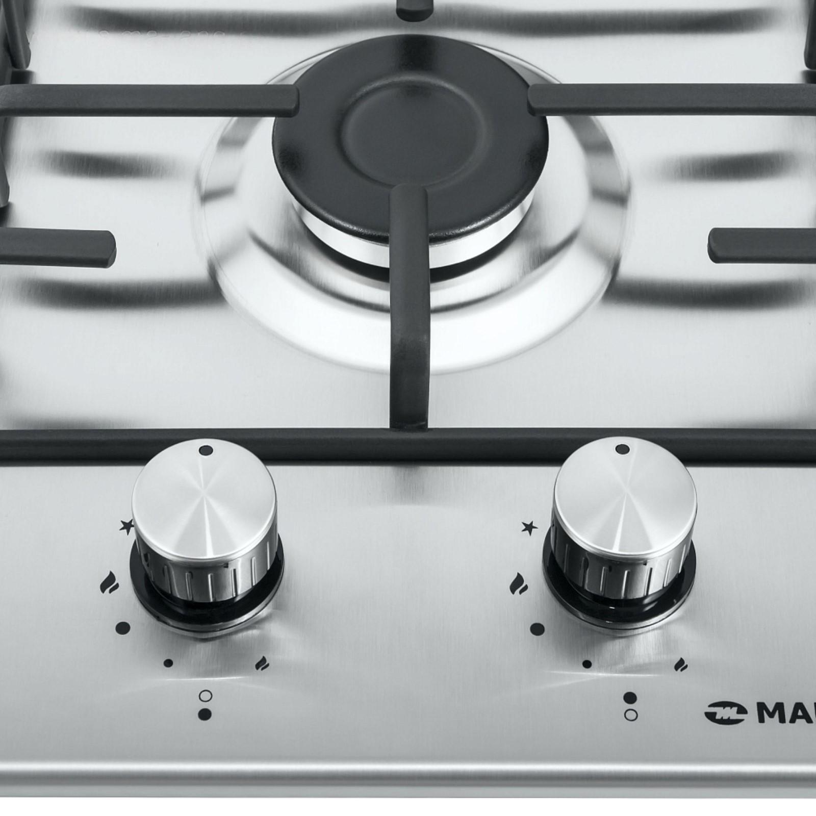 Варочная панель Maunfeld сделана из эмалированной стали и имеет чугунные решётки. Предназначена для приготовления и разогрева блюд на газу. Техника встраивается в кухонный гарнитур, поэтому экономит пространство.