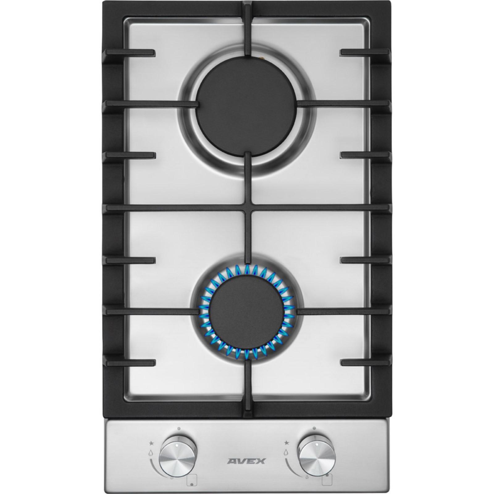 Варочная поверхность AVEX HS 3022 X, газовая, 2 конфорки, 27х48 см, серебристая