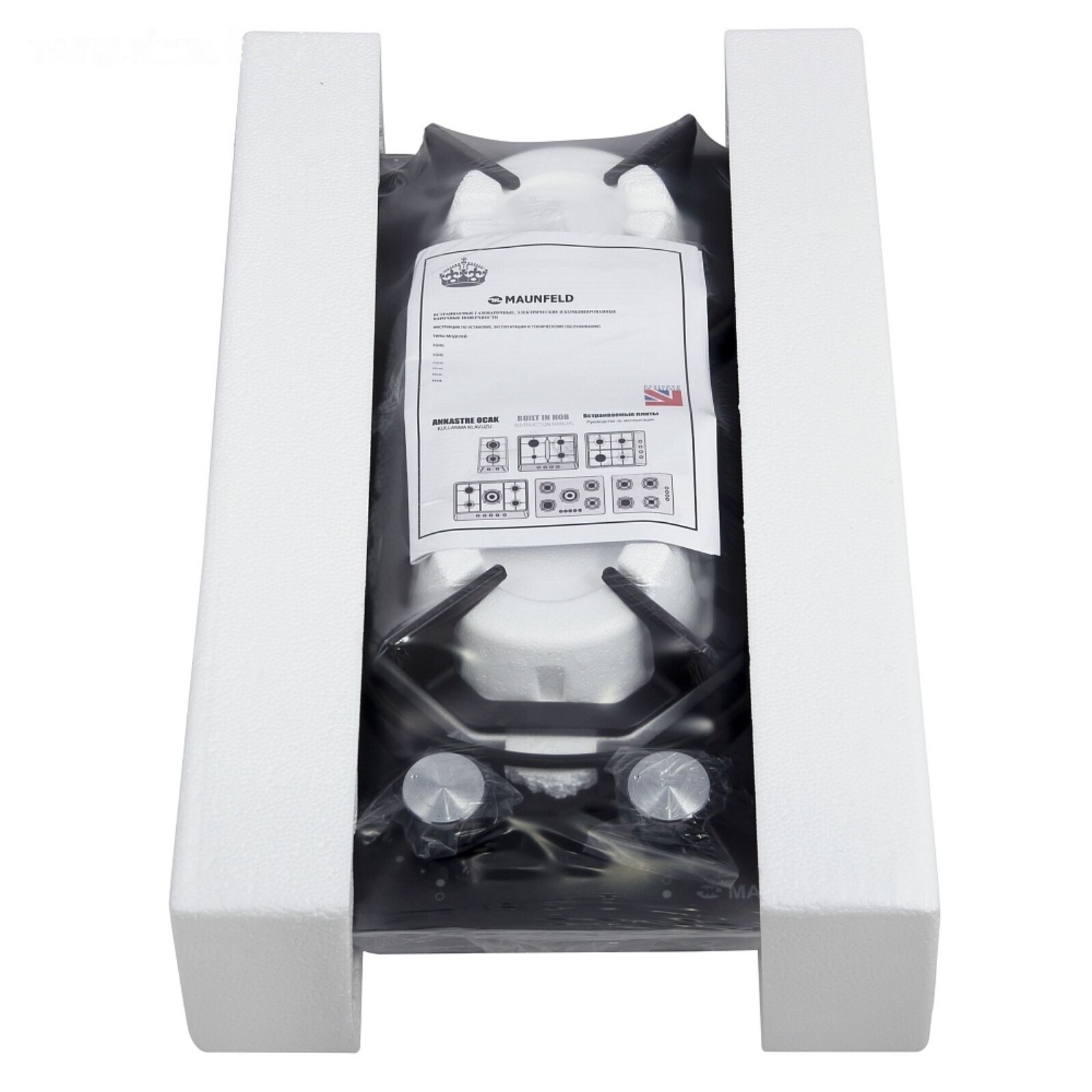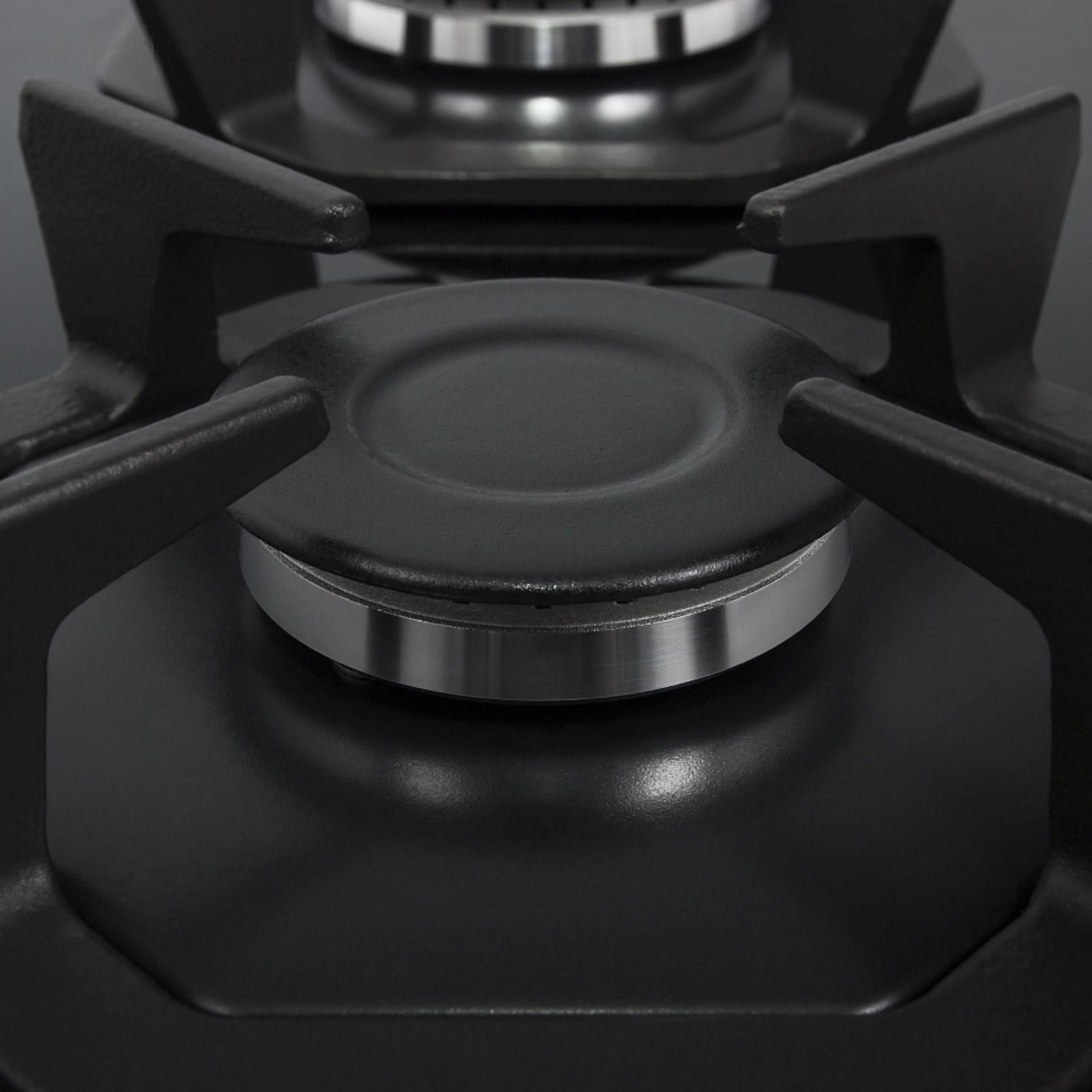 Maunfeld EGHG.32 — независимая встраиваемая газовая панель со стеклянным столом и чугунной решёткой.