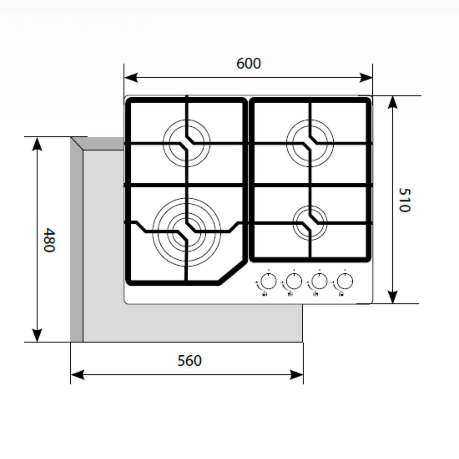 Варочная панель имеет рабочую поверхность из закалённого стекла с чугунными решётками. Изделие предназначено для приготовления и разогрева блюд на газу. Встраивается в кухонный гарнитур, поэтому экономит пространство.