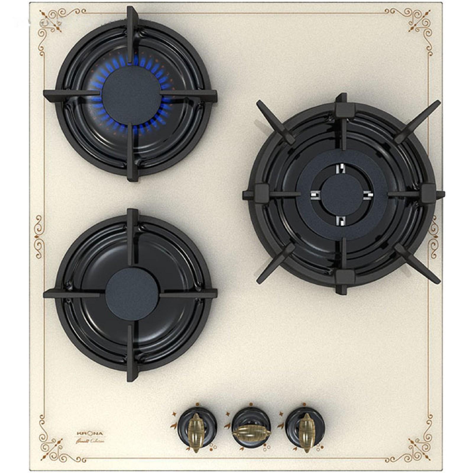 Варочная поверхность KRONA ANIMA 45 IV, газовая, 3 конфорки, 45 см, бежевая