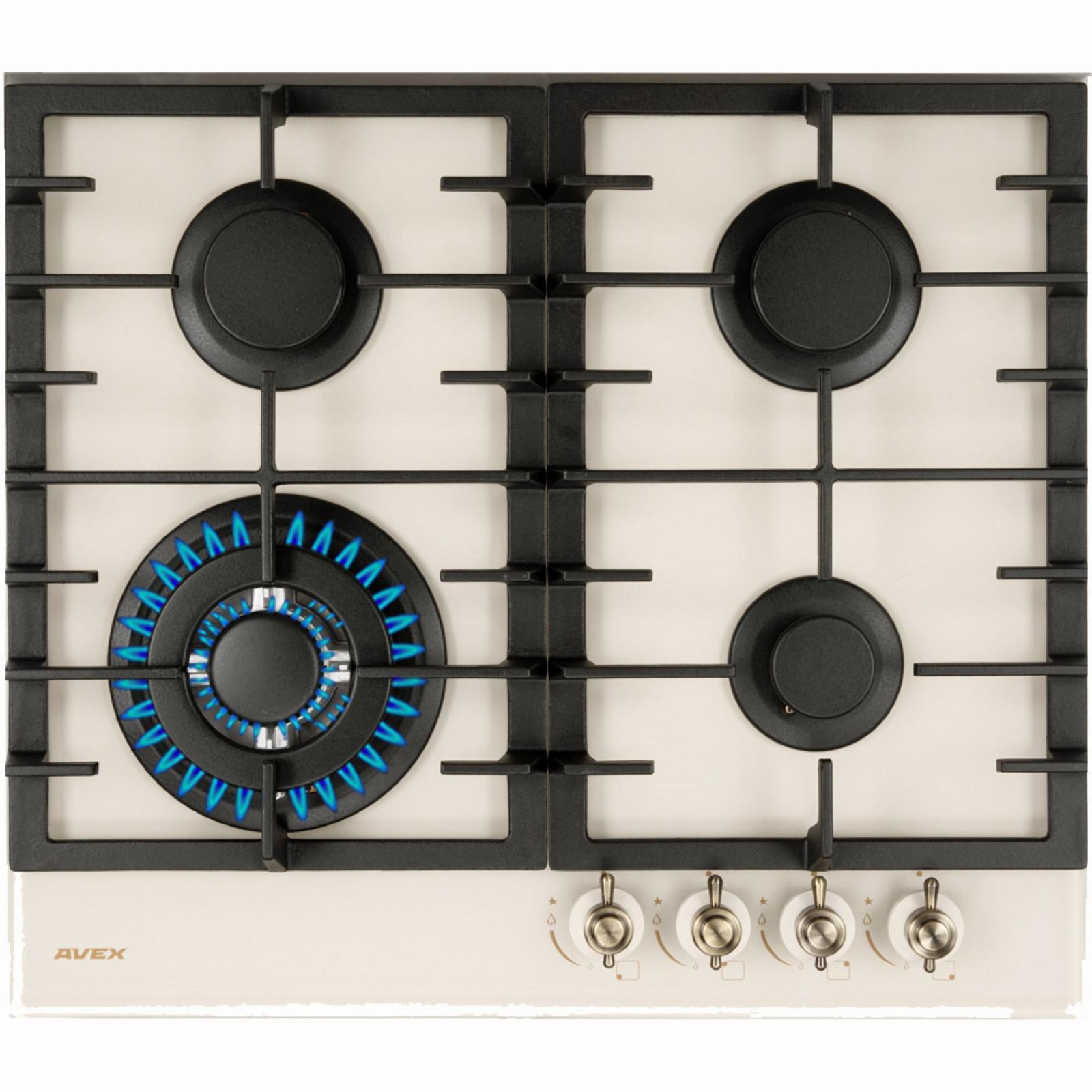 Варочная поверхность AVEX HM 6044 RY, газовая, 4 конфорки, 56х48 см, WOK, бежевая