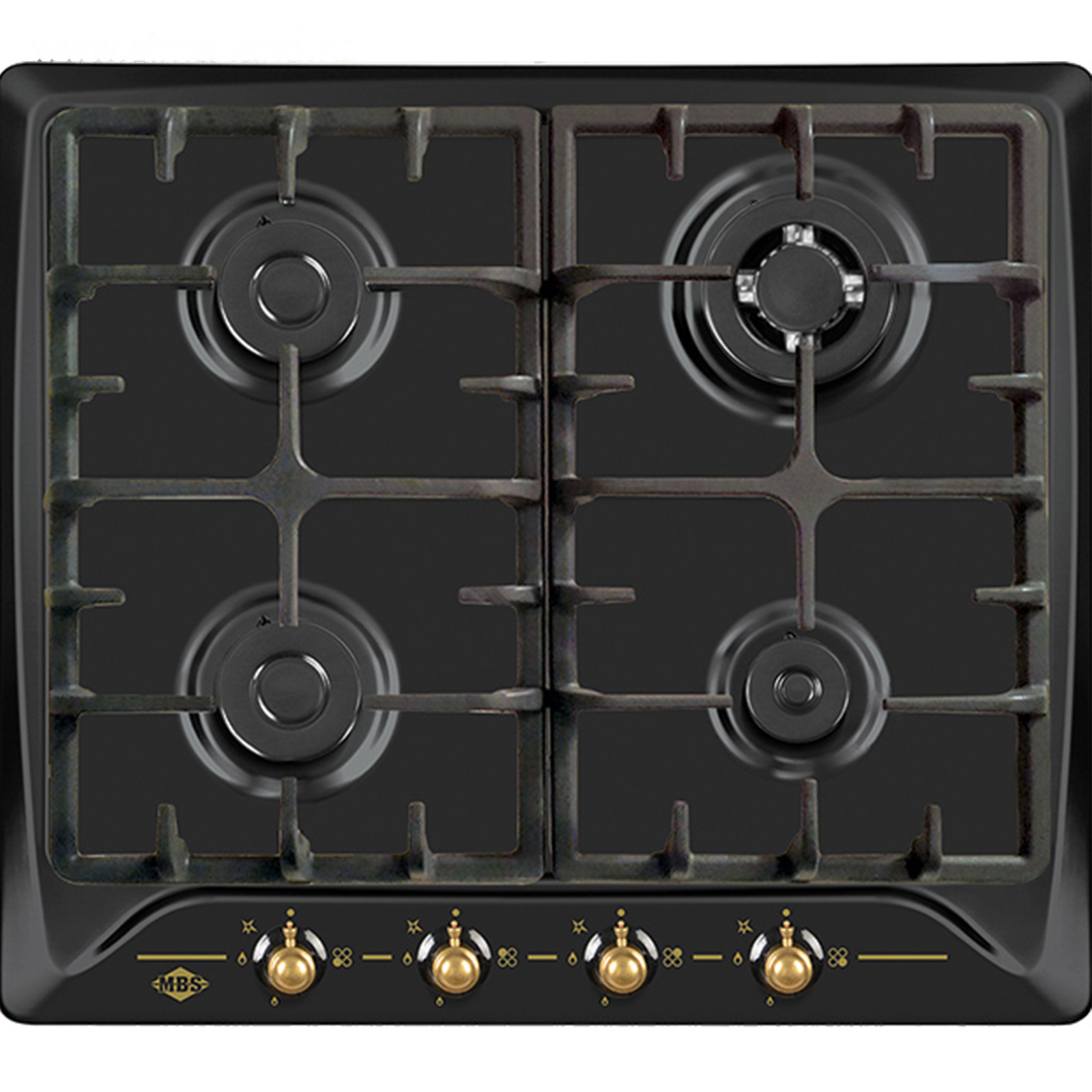 Варочная поверхность MBS PG-606BL, газовая, 4 конфорки, механич. упр.-е, чёрно-золотистая